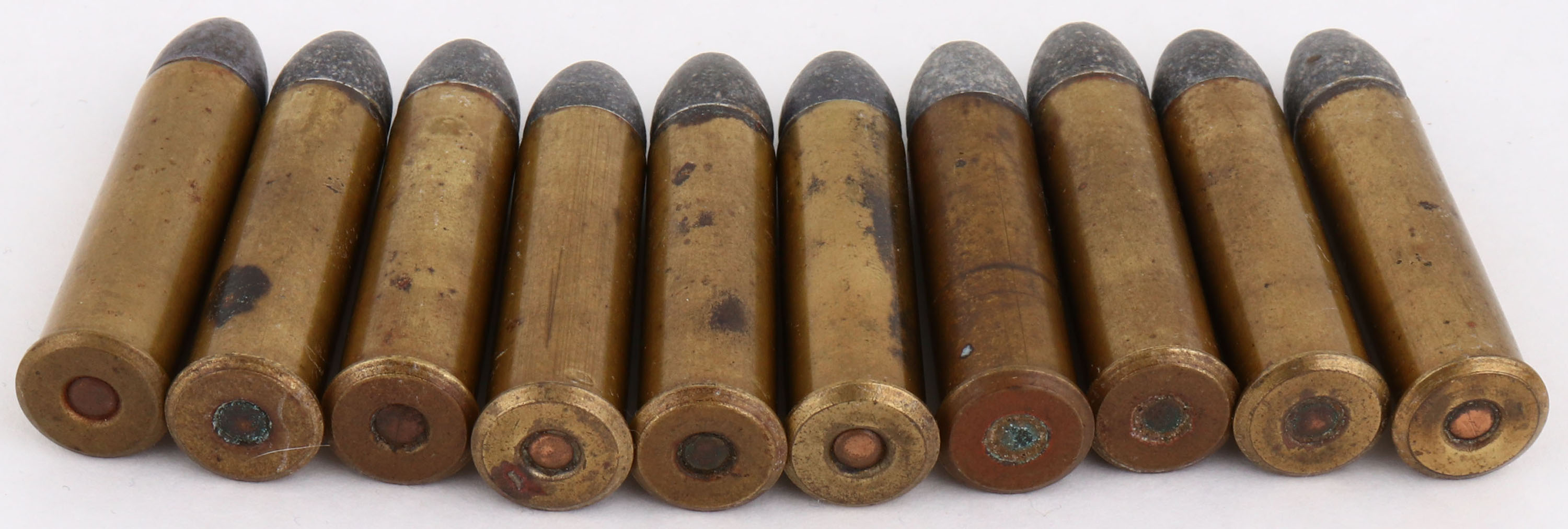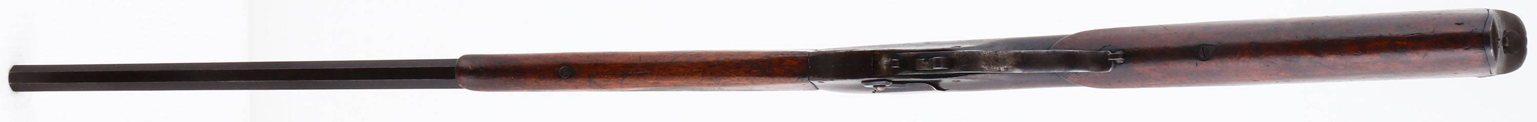 RARE Evans Sporting Rifle ''New Model'', CAL: 44 EVANS, MFG: 1873-79, SN: N/A, Lever Action Repeating Rifle, 28'' octagon barrel. The Evans lever-action repeating rifle was revolutionary for it's time. Invented by Maine dentist Dr. Warren R. Evans, with the help of his brother George, they perfected the rifle & started the ''Evans Rifle Manufacturing Company'' of Mechanic Falls, Maine in 1873. The magazine operated on the principle of the Archimedean screw & took the form of an enclosed fluted shaft that rotated within a spiral tube. As the lever was moved, the shaft rotated & the .44 Evans cartridges advanced from the tube into to the receiver, without requiring a magazine follower. In 1872, the U.S. Army announced it would hold trials to test various breechloading firearms with the intention of adopting a design suitable for use by troops. Although the Evans rifle was fired 38 times in 19 seconds with no misfires, it experienced mechanical difficulties that were sufficient enough to disqualify it from consideration. It was then promoted as a sporting rifle. A total of almost 15,000 Evans repeating rifle were produced & has the unique distinction of being the only firearm mass-produced in the state of Maine in the 19th century. The Evans rifle also had the greatest magazine capacity of any rifle mass-produced in the 19th Century, holding up to 34 rounds. The original wood stock is very good & solid, with scratches, scrapes & dings, alongside a couple gouges. The schnabel forearm is checkered & displays similar wear. Most of these rifles suffered cracks in the stock, however this example has somehow survived without cracks. The metal finish has toned to a smooth brown patina, with remnants of original blue. Bore is very good, with pitting amongst strong rifling. The barrel holds a folding ladder sight, with graduations from 1 to 4 on the right side & 5 to 11 on the right face of the ladder & a silver blade front sight, Buttstock carries a steel trapdoor loading port buttplate. Comes with (10) rounds of 44 Evans cartridges. A very unique & unusual rifle with great American history. Antique, No FFL Req. - Value: 1500 to 3500