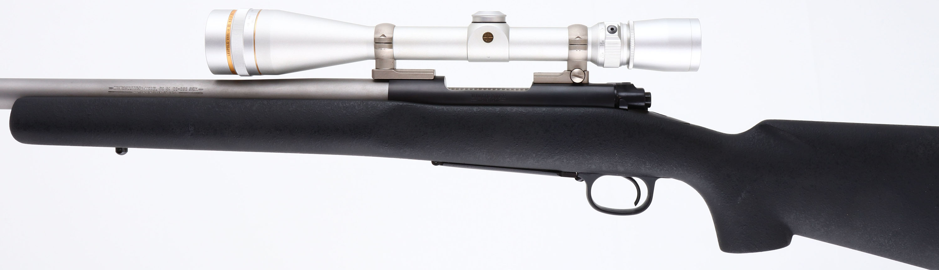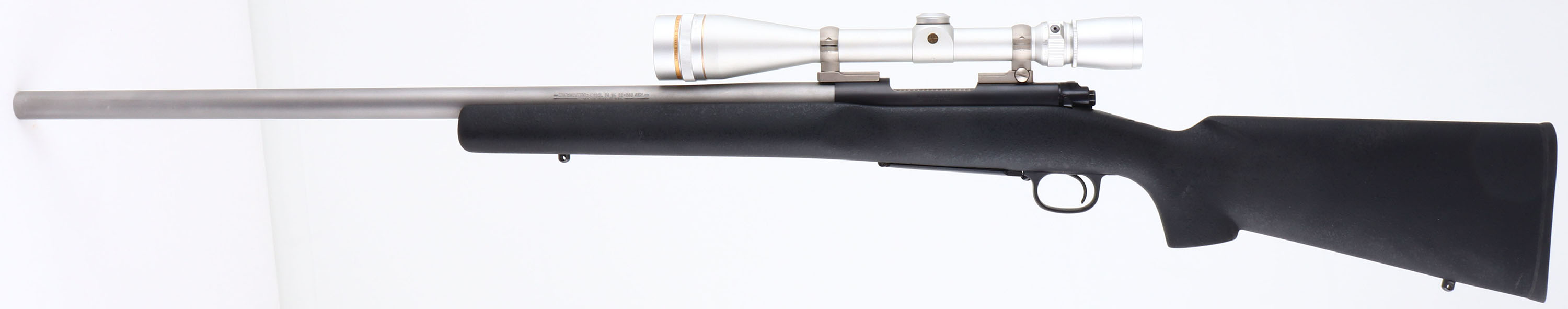 Winchester, Model 70 SA, CAL: 22-250 REM, MFG: 1990's, SN: G2133590, Bolt Action Rifle, 26'' ''Heavy Varmint'' barrel. The original synthetic pistol grip stock is excellent, with very few handling marks to the original textured finish. The stainless steel finish on the barrel is excellent. The metal blue finish on the receiver rates 99% overall. Bore is excellent. The receiver holds a Leupold Vari-X III 6.5 x 20 scope. Sling studs present. Stock carries a solid black rubber recoil pad. A virtually new & excellent varmint rifle. FFL Req. - Value: 600 to 1200