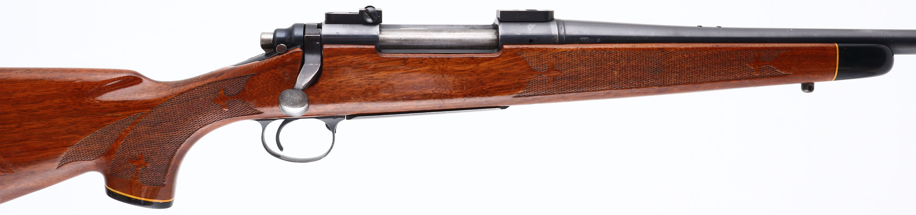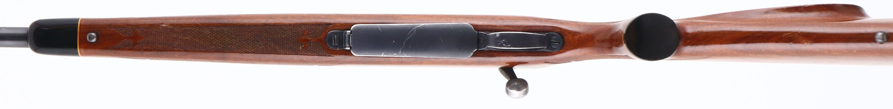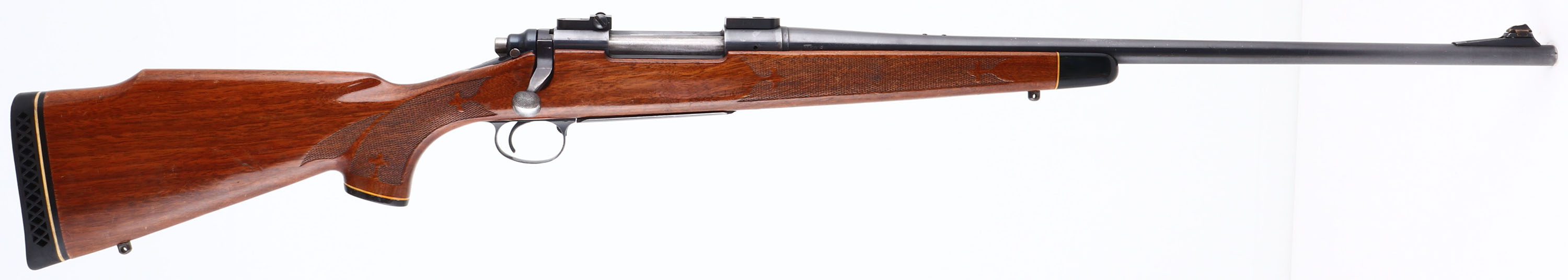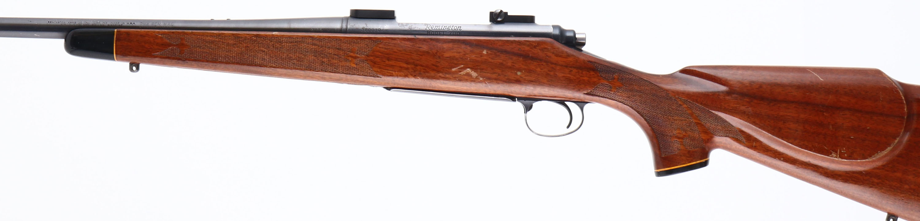 Remington, Model 700, CAL: 7MM REM MAG, MFG: 1968, SN: 380030, Bolt Action Rifle, 24'' barrel. The original checkered, cheeked & flat pistol grip wood stock, with ebony forend tip & grip cap is very good. The original finish is very good, with several scrapes, scuffs, scratches & minor dings. The original metal blue finish rates 90% overall. Bore is excellent & bright. The receiver holds Burris scope blocks, while the barrel has screw filled holes from rear sight removal & a ramp elevated front blade sight. Stock carries a Remington ventilated recoil pad. Sling studs present. An original condition hunting rifle. FFL or C&R Req. - Value: 400 to 800