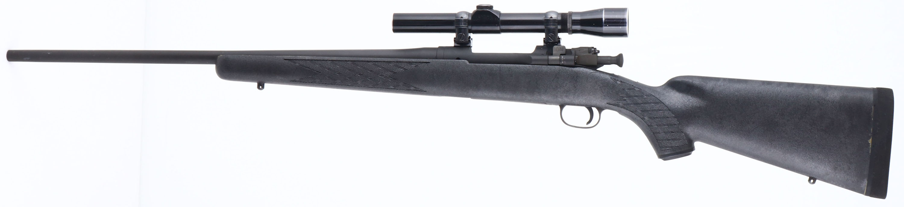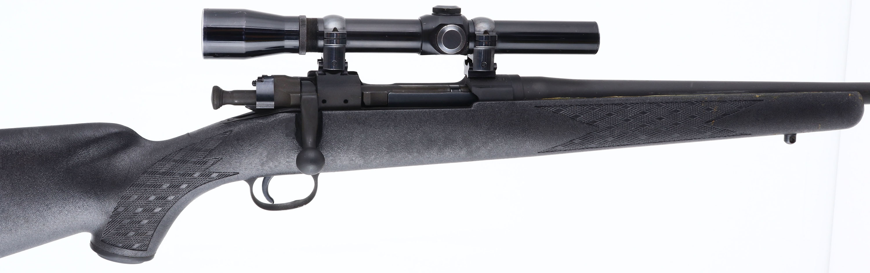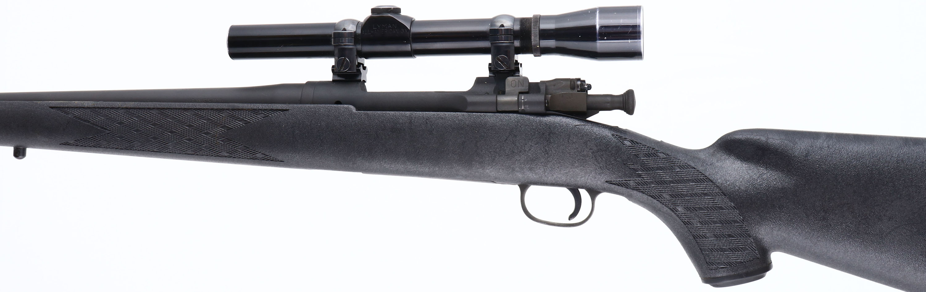 Custom Rifle, Remington, Model 03-A3, CAL: 30-06, MFG: 1942 (Receiver), SN: 4046490, Bolt Action Rifle, 22'' barrel. The Ram-Line checkered & capped pistol grip synthetic stock is excellent. There are handling marks, with remnants of bedding compound in the crevices along the barrel. The military style finish is very good, with minor blemishes & scuffs. Bore is very good & bright, with consistent light spotting between the rifling. The receiver holds a Lyman All-American 3x scope. No open sight provisions. Solid black recoil pad. Sling studs. FFL or C&R Req. - Value: 300 to 600