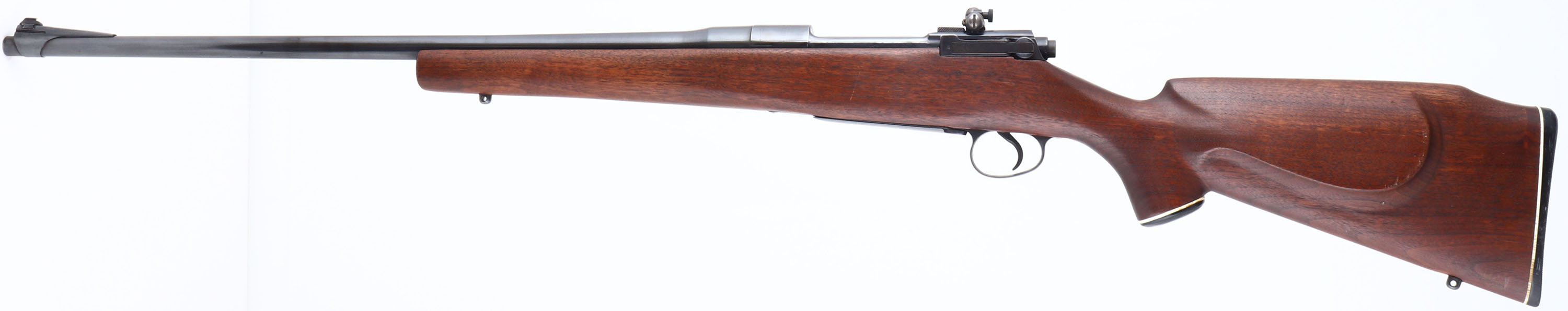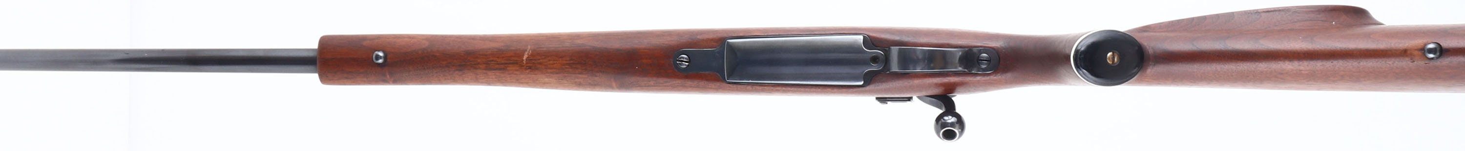 Custom Rifle, Remington, Model 1917, CAL: 30-06, MFG: 1918, SN: 266714, Bolt Action Rifle, 23 1/2'' barrel. The custom cheeked & capped pistol grip wood stock is excellent. There are very minor scratches & dings to the finish. The restored metal blue finish rates 95%. Bore is excellent, with strong rifling. The receiver holds an adjustable rear peep sight, while the barrel has a ramp elevated blade front sight. Checkered black plastic buttplate. Sling studs. FFL or C&R Req. - Value: 400 to 800