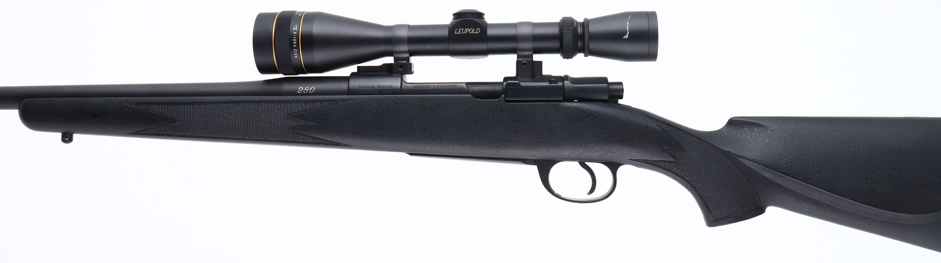 Custom Rifle, Mauser, Modelo Argentino 1909 Action, CAL: 280, MFG: 1909-59 (Receiver), SN: G9227, Bolt Action Rifle, 24'' barrel. The checkered, cheeked & pistol grip composite stock is excellent. The satin black finish on the ''Gentry Custom Rifles'' barrel & receiver rates 98%. Bore is excellent. The receiver holds a Leupold Vari-X II 4x12 scope. No open sight provisions. Stock carries sling studs & solid black recoil pad. An excellent custom hunting rifle built on a Mauser 98 action. FFL or C&R Req. - Value: 400 to 800
