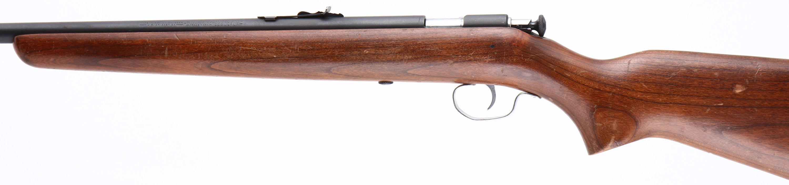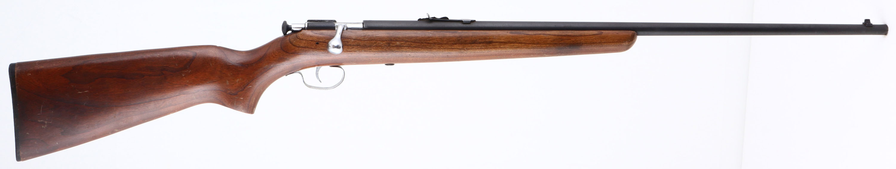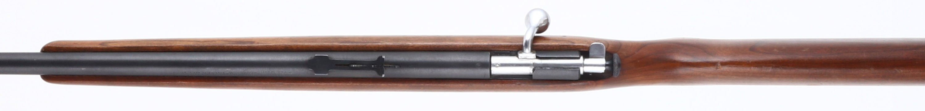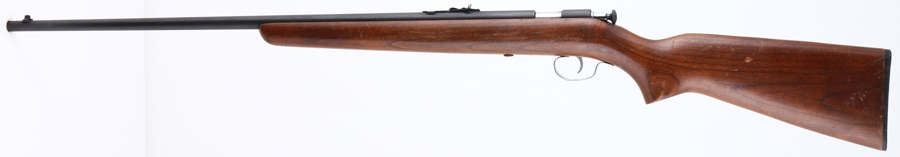Winchester, Model 67A, CAL: 22 S.L.LR, MFG: 1937-63, SN: NSN, Bolt Action Rifle, 27'' barrel. This rifle carries the later original flat pistol grip & tapered/slant forearm tip stock which is very good. It has multiple light scratches, scrapes & dings to the original finish. The metal blue finish rates 95% overall. Bore is excellent. The barrel holds an adjustable rear sight & blade front sight. Nickeled trigger, trigger guard & bolt handle. Original Winchester checkered plastic buttplate. FFL or C&R Req. - Value: 150 to 350