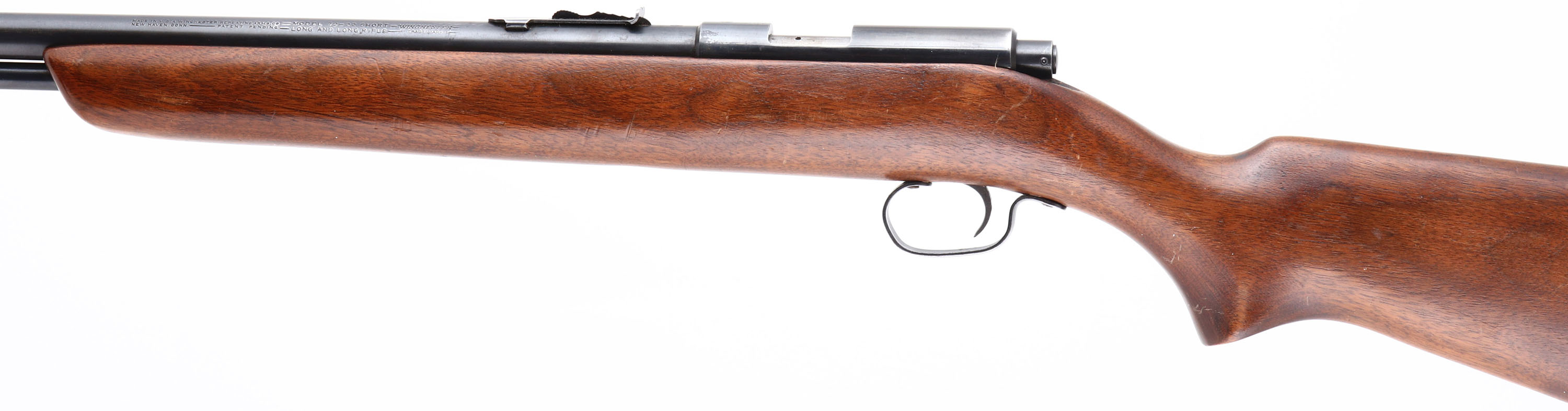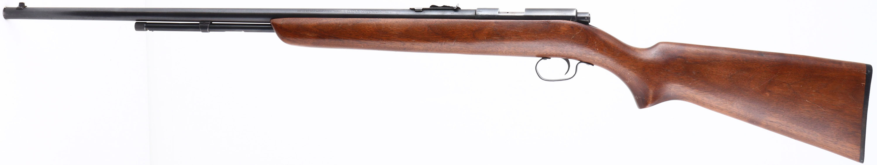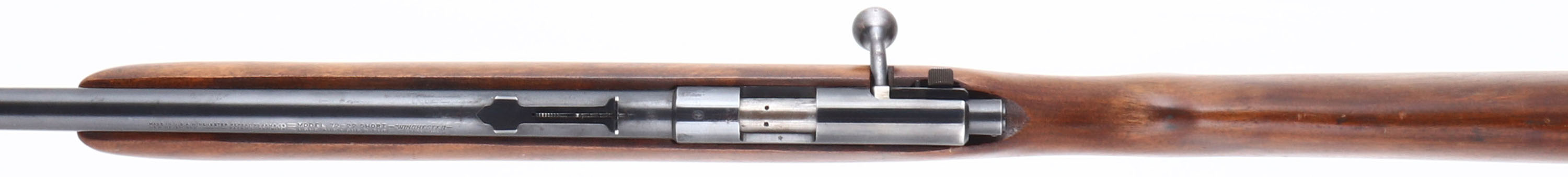 Winchester, Model 72, CAL: 22 Short, MFG: 1938-59, SN: NSN, Bolt Action Rifle, 25'' barrel. The original, flat pistol grip wood stock is very good, with some light scrapes or dings to the original finish. The metal blue finish rates 95% overall. Bore is excellent. The barrel holds an adjustable rear sight & blade front sight. Stock carries a Winchester plastic buttplate. FFL or C&R Req. - Value: 150 to 300