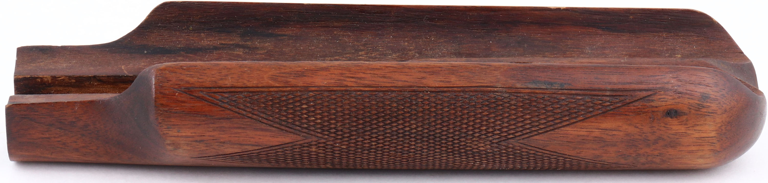 A.H. Fox Sterlingworth, CAL: 12 GA, MFG: 1910, SN: 35184, Break Action SxS Shotgun, Choke: F/MOD, 30'' Barrels with solid matted rib. The checkered & capped pistol grip wood stocks are excellent, displaying a several minor scratches, scrapes & contusions to the original finish. Comes with a second wide body, checkered beavertail forend. It is very good, but does have a tightly repaired stress crack which runs the full length, but is well hidden withing the checkering. The metal blue finish on the barrels rate 95%. The case-hardened receiver, break lever & tang display fading case-colors, which are still very good, especially in protected areas. Receiver & trigger guard display decorative border engraving. Bores are excellent. The solid, matted rib holds a single red front bead. Buttstock carries a ventilated recoil pad. LOP: 13 7/8'' to front trigger, DAH: 2 5/8'', DAC: 1 1/2''. FFL or C&R Req - Value: 500 to 1000
