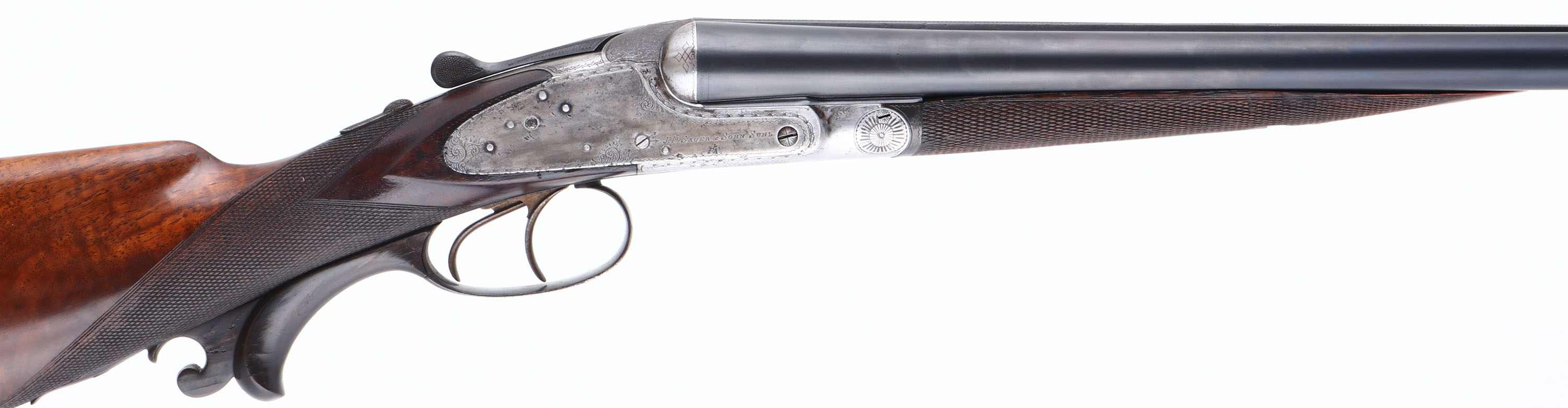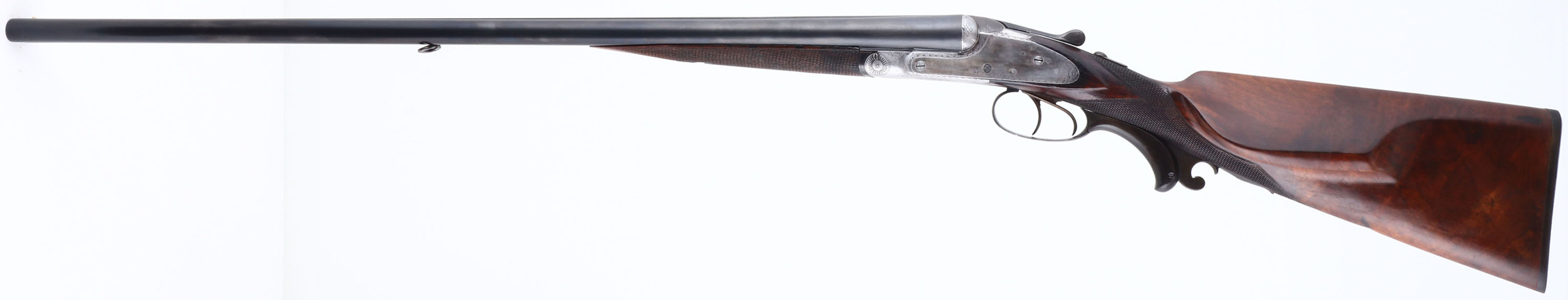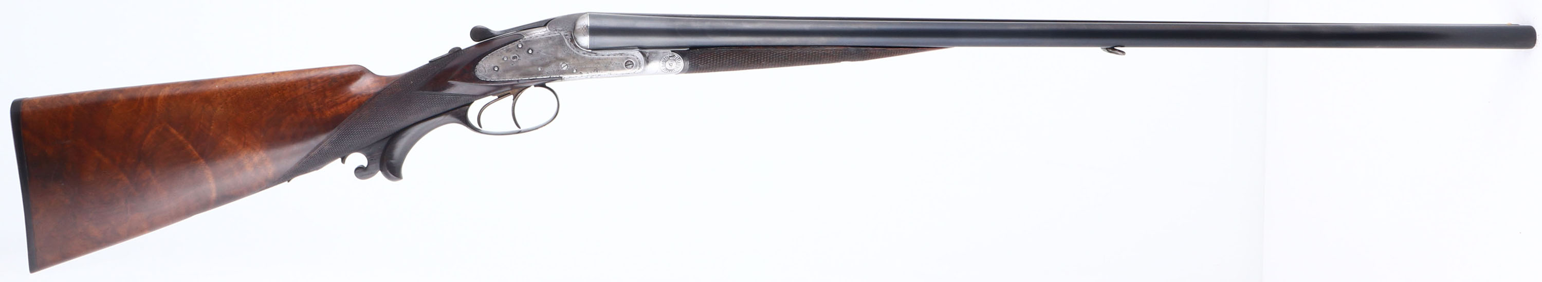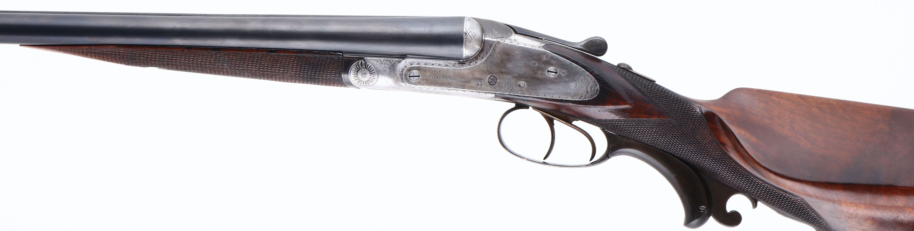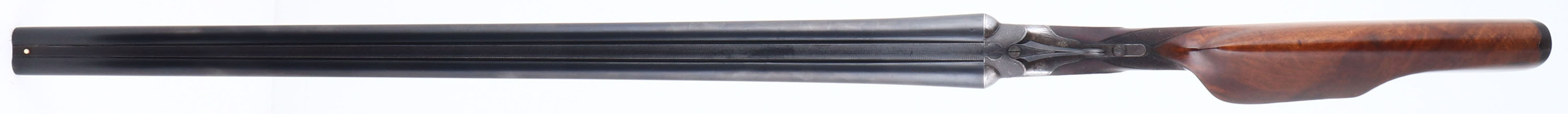 J.P Sauer & Sohn, Sidelock Double Barrel Shotgun, CAL: 16GA, MFG: N/A, SN: 46223, Break Action SxS Shotgun, 29 1/8'' barrels. The checkered & cheeked straight grip wood stock, with horn finger rest is excellent, having been lightly sanded & refinished. There are minor handling marks & scuffs to the finish. The restored metal blue finish on the barrels rates 95%, with intermittent cleaned pitting. The receiver is case-hardened, fully toned to metal grey, with shadowing remaining from case-colors & intermittent pitting. Bores are excellent, slightly rough. The solid, matted rib holds an ivory front bead. Checkered plastic buttplate. Double triggers. Front sling loop present, empty rear sling hole. FFL or C&R Req. - Value: 1000 to 2500