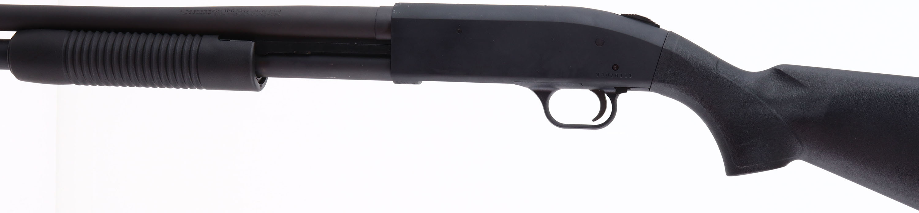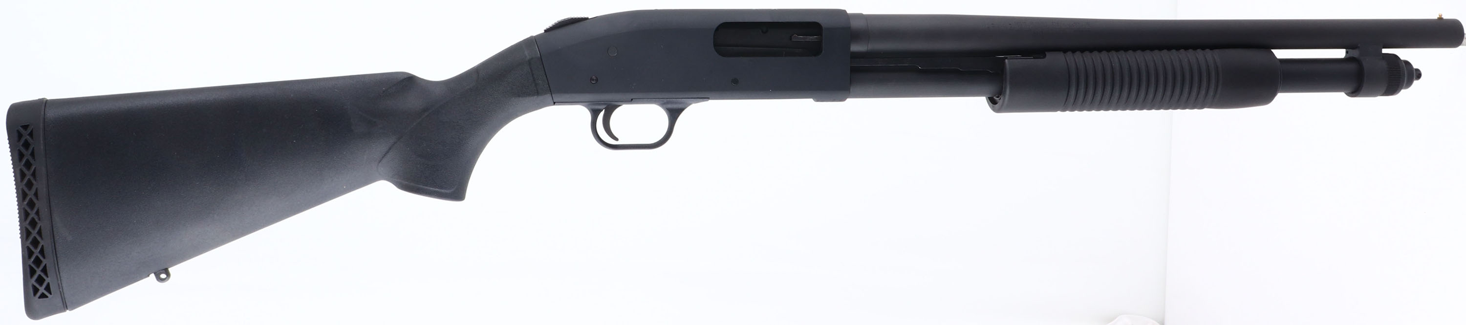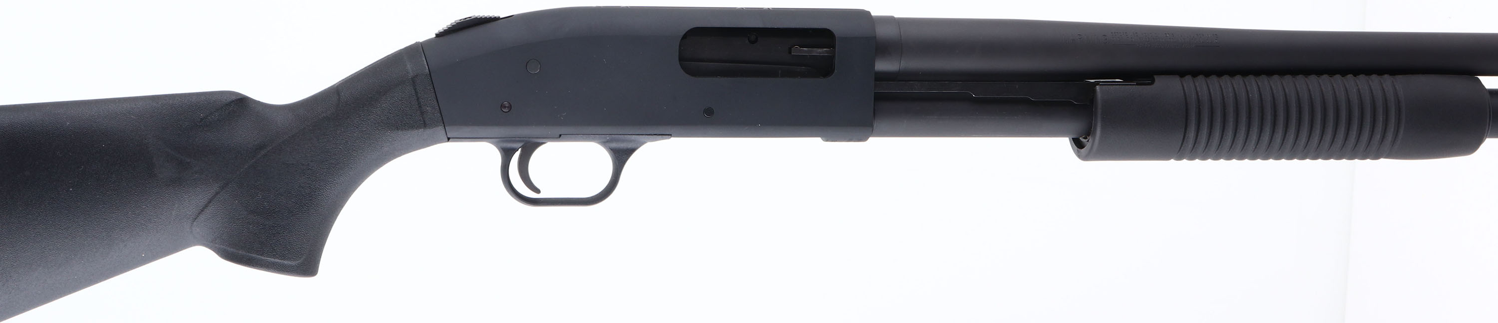 Mossberg, Model 590, CAL: 12 GA, MFG: Modern, SN: V1020111, Pump Action Shotgun, 2 3/4'' or 3'', Cylinder Bore, 18 1/2'' No rib barrel. Same shotgun in the 590A1 version as used by U.S. military forces. The original flat pistol grip synthetic stocks are excellent, near mint. The original metal black finish rate 99% overall. Bore is excellent. The barrel holds a single front bead. Stock carries the original ventilated recoil pad. Sling stud provisions. Basically, a new home security or multi use shotgun. FFL Req. - Value: 400 to 550