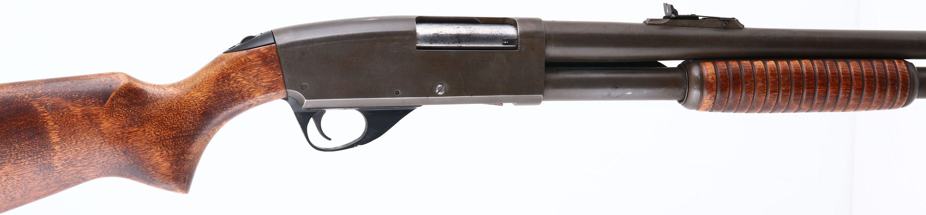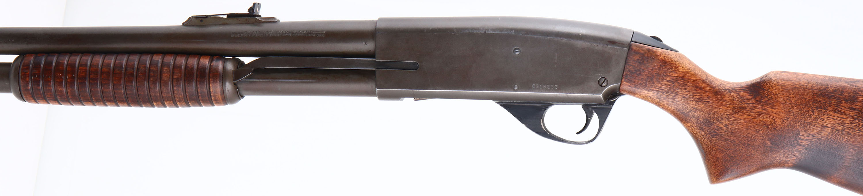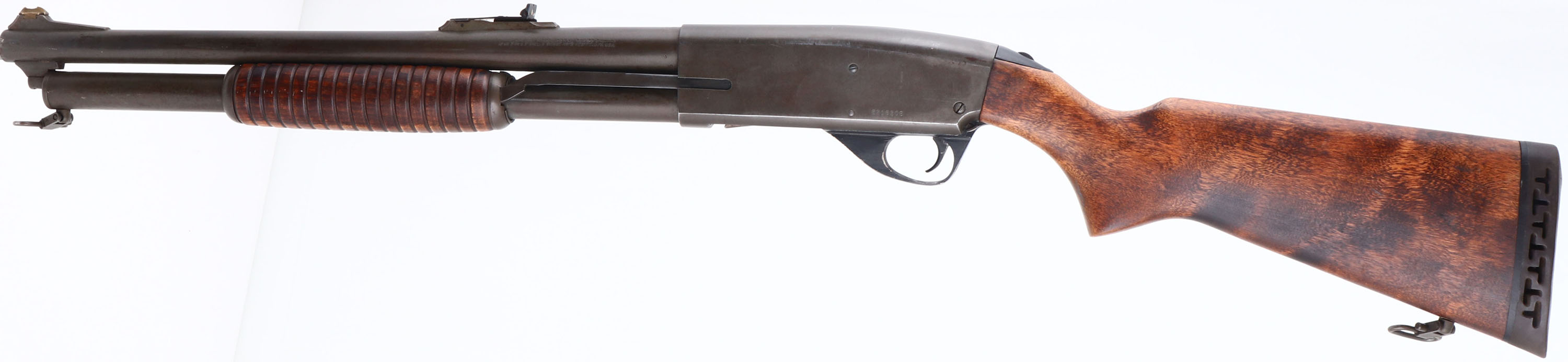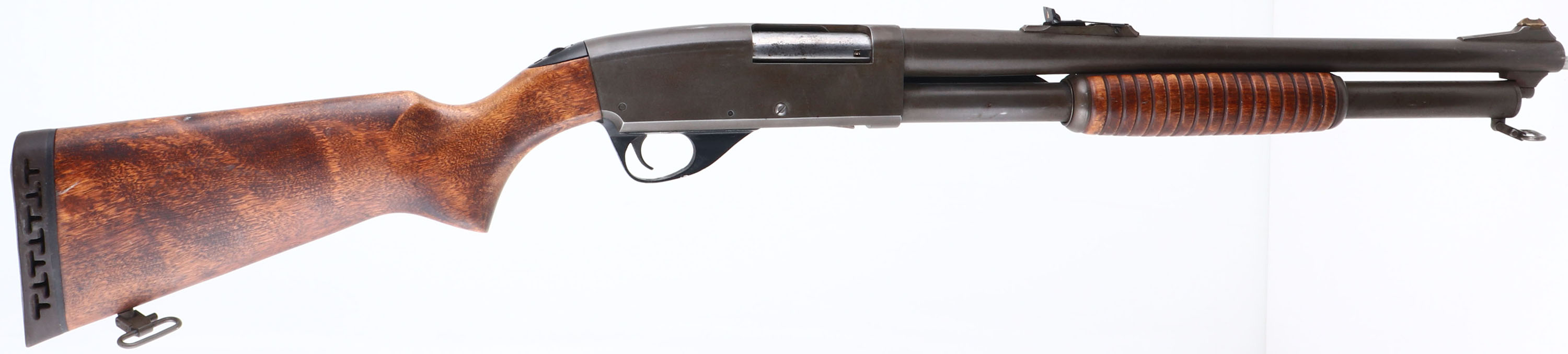 Savage, Model 69RXL Series E, CAL: 12 GA, MFG: 1983, SN: E216208, Pump Action Shotgun, 2 3/4'' or 3'', Cylinder Bore, 18 1/2'' No rib barrel. Early in the Vietnam War, the Stevens Arms Company received orders for military riot guns from the Department of Defense. The shotguns saw wide usage during U.S. involvement in Vietnam, especially among Military Police, though with infantry & other units as well. Some also went to the Vietnamese. Reportedly, 60,920 riot guns were delivered to the U.S. Armed Forces or allies beginning in 1963. Though originally intended primarily for the Vietnamese, the need for shotguns by U.S. troops resulted in thousands being issued to U.S. personnel. Widely used during the Vietnam War the involvement of Savage/Stevens shotguns is relatively unknown outside of U.S. military collectors. This later & updated 69RXL version was often used by law enforcement & by civilians as home security arms. The original flat pistol grip stock & ribbed forend are excellent, near mint. The military style metal gray finish has a green/brown toned patina & rates 90% coverage. Anodized trigger guard with a few nicks. Bore is excellent. The left side of the barrel is marked ''- SAVAGE MODEL 69RXL SERIES E - / 12 GA. 2 '' & 3'' SHELLS SAVAGE ARMS, WESTFIELD, MA. U.S.A.'' & proof/inspection marks on both the left side of the barrel & top of the barrel. The left side of the receiver is marked with the SN. The barrel holds an adjustable rear & front ramp blade sight, with a portion of the blade broken off. The top of the receiver is serrated to help reduce glare. Stock carries the original ventilated recoil pad. LOP 14'' over pad. Sling stud & swivels. An excellent home security or multi use shotgun. FFL Req. - Value: 300 to 600
