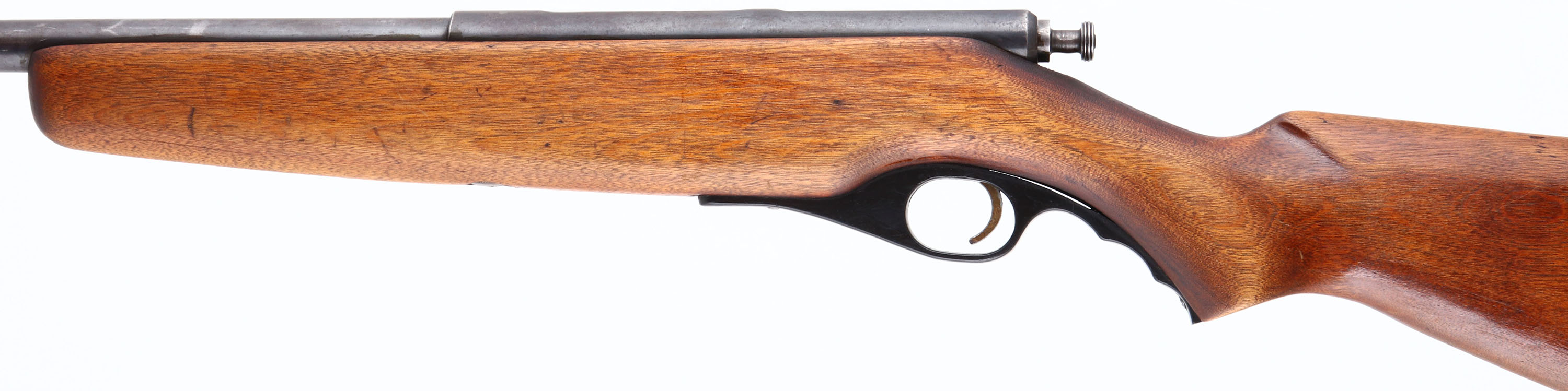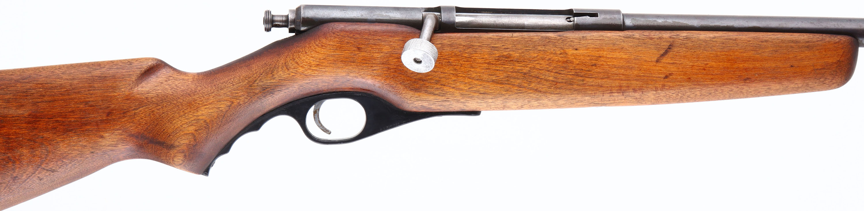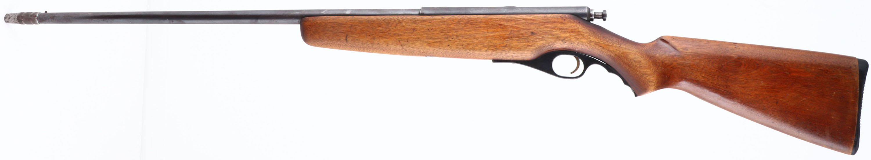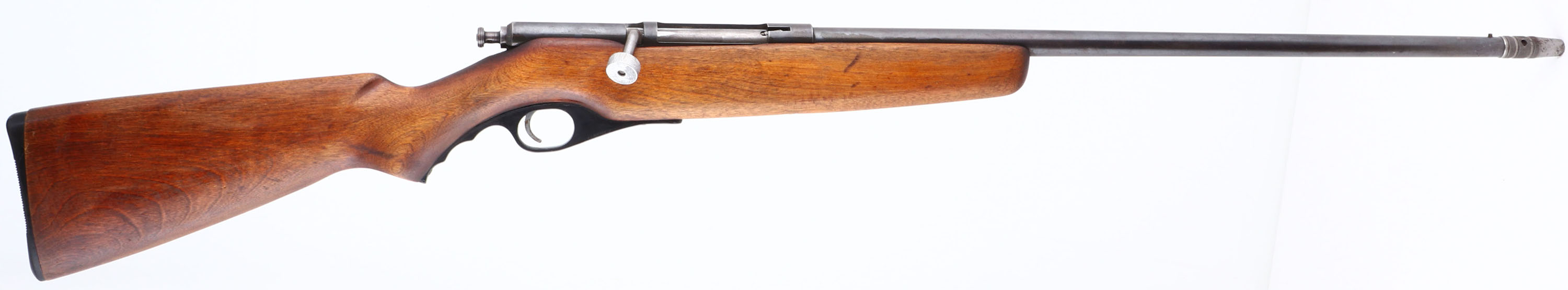 Ward's Western Field, Model 04M 218A, CAL: 410GA, MFG: N/A, SN: NSN, Bolt Action Shotgun, 24'' threaded barrel w/choke. The original flat pistol grip wood stock is very good, having been refinished long ago. There are numerous light scrapes & a few dings to the worn & thinning refinish. The metal blue finish has worn to 70% coverage of a mix of remaining original blue & brown patina, with areas worn to a gun metal grey. Bore is very good & bright. The barrel holds a single front bead. Grooved plastic buttplate. Bolt handle has been replaced. The bolt can be a bit sticky & intermittently needs to have the back knob rotated in order for the bolt to close. May need some cleaning, adjustment or repair. FFL or C&R Req. - Value: 100 to 250