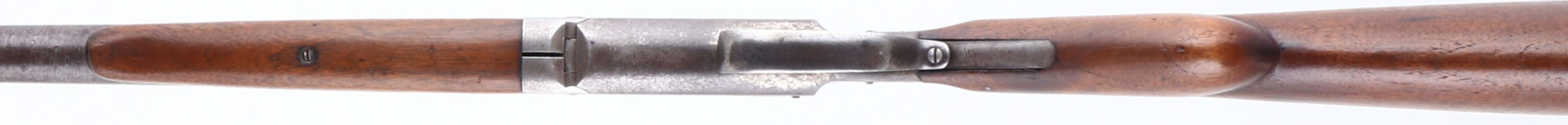 C.S Shattuck, American, CAL: 12GA, MFG: 1895, SN: 638, Triggered Break Action Single Shot Shotgun, 34'' barrel. The round knob pistol grip wood stock & small forend are good. There are multiple cracks at the wrist, along with a couple edge chips & other contusions, scrapes & dings. The twisted steel pattern on the barrel is prominent, toned to a brown patina, with metal grey undertones & the receiver has worn to metal grey, toned to a brown patina. Bore is good, with consistent roughness & light pitting. The barrel holds a single front bead. Smooth metal buttplate. Antique, No FFL Req. - Value: 100 to 300