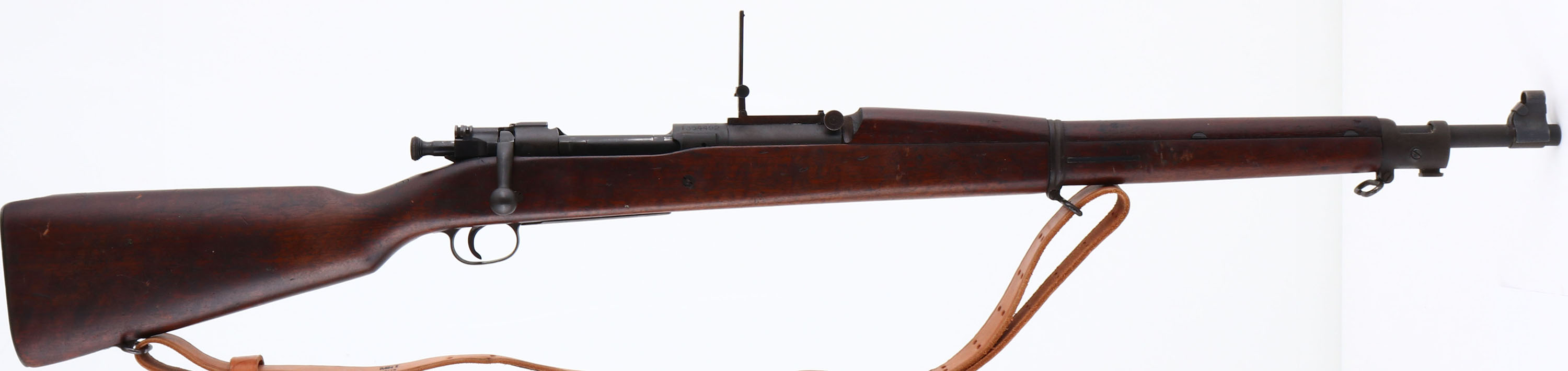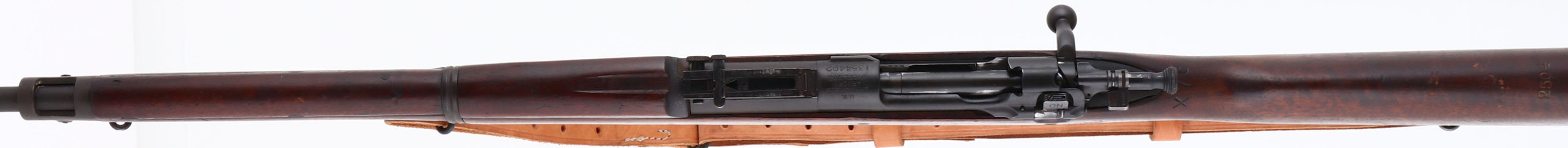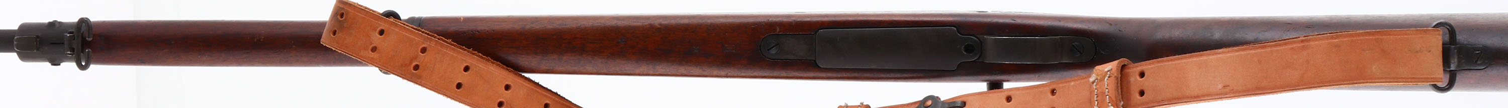 Springfield Armory. Model: 1903A1. Cal: 30-06. : MFG: 1930. S/N: 1354492. Bolt Action Rifle. 24'' Round Barrel. The semi pistol grip Type C stock is very good. There are scratches, dings & gouges from use & age, ''P'' & faint circle cartouche, left side stock above trigger stamped with ''AAB'', ''AAX'' over stamped together, top of wrist is marked ''X76'', top rear of stock by buttplate marked ''2504'', belly of stock marked with two ''M'' stamps, two 'E'' stamps on bottom of stock in front of magazine, ''S'' marked in grove for magazine cutoff. The metal retains 85% finish overall with light wear. Top of receiver is marked, ''U.S.'', ''SPRINGFIELD ARMORY'', ''MODEL 1903.'', S/N, Top end of barrel is marked, ''S A'', flaming bomb, ''8-42'', rear barrel band is marked ''U''. Bore is very good, bright with light roughness. Hooded blade front sight, U-notch & aperture ladder rear sight marked 3 to 27. Military trapdoor buttplate. Bottom sling swivels & stacking swivel, comes with period correct leather sling. FFL or C&R Req. - Value: 700 to 1400