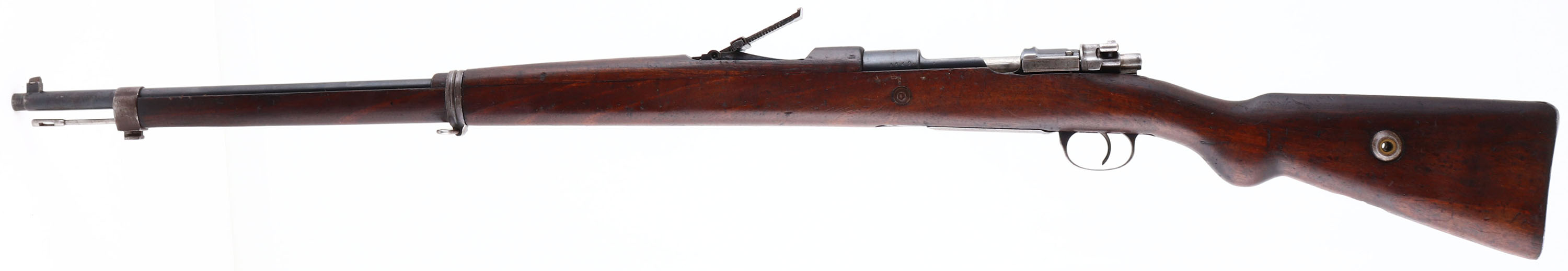 Asfa Ankara. Model: M38. Cal: 7.92x57mm. MFG: 1940. S/N: 8642X. Bolt Action Rifle. 29'' Barrel. The semi pistol grip stock is very good with scratches, gouges, oil darkening & wear from use/age. Bolt disassembly disc in stock, ''3'' Star ''0'' stamped into bottom of stock Infront of magazine. The metal finish rates 70% overall with spots worn to a gun metal gray & spots of brown patina. Left side of receiver is marked with S/N, top of receiver is marked ''T C'', ''AS FA'', ''ANK ARA'', ''K.KALE, ''1940'', Crescent Moon/ Stars, end of barrel is stamped with importer, S/N mismatched bolt. Bore is very good, bright & shiny. Barleycorn front sight, V-notch Tangent rear sight marked 1 to 20. Metal buttplate with wear & brown patina. Rear sling swivel is missing, has cleaning rod. A excellent shooter. FFL or C&R Req. - Value: 200 to 400