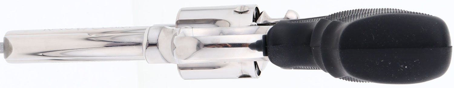 NEW BOXED, Colt, Model KING COBRA, (AA3041) CAL: 357 MAGNUM, MFG: 1989, SN:KA0568, Double Action Revolver, 4'' barrel. First introduced in 1986, the Colt King Cobra is a medium ''V'' frame double-action revolver made of very hi-grade carbon steel & featuring a six round cylinder. The mirror bright stainless finish in both 4'' & 6'' lengths were offered from 1988-1992. It was marketed to both law enforcement agencies & civilian firearms enthusiasts. Two subsequent offerings of this model were later produced, however collectors gravitate to the early production models, which subsequently demand a higher collector value. The left side of barrel is stamped ''KING COBRA''. The right side ''357 MAGNUM''. They came with Colt gold medallion Pachmayr black checkered rubber grips, with finger grooves. The grips on this example are mint. The mirror bright stainless finish is mint. Bore is mint. The matte finished top of the barrel holds a screw height adjusting ''U'' notch rear sight & front blade, with the serrated orang insert. This gun comes in its original Colt burgundy box, with instruction manual. NOS. Nearly Mint in every way & extremely collectible. FFL Req. - Value: 2500 to 3500