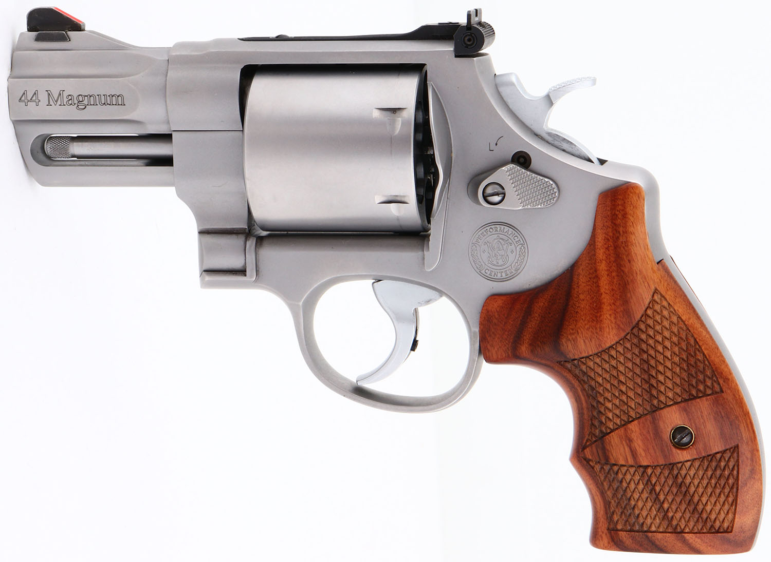 CASED, Smith & Wesson, Model 629-6 Performance Center, CAL: 44 MAG, MFG: Modern, SN: CRJ7020, Double Action Revolver, 2 1/2'' barrel. The custom checkered wood grips are excellent. The stainless steel finish rates 99%+ overall. Bore is excellent & minty. The frame holds an adjustable rear sight & Hi-Viz red front sight. Comes in original grey hard case, with extra rubber grips, factory test fire cartridge, paperwork, lock & key. FFL Req. - Value: 1000 to 2000