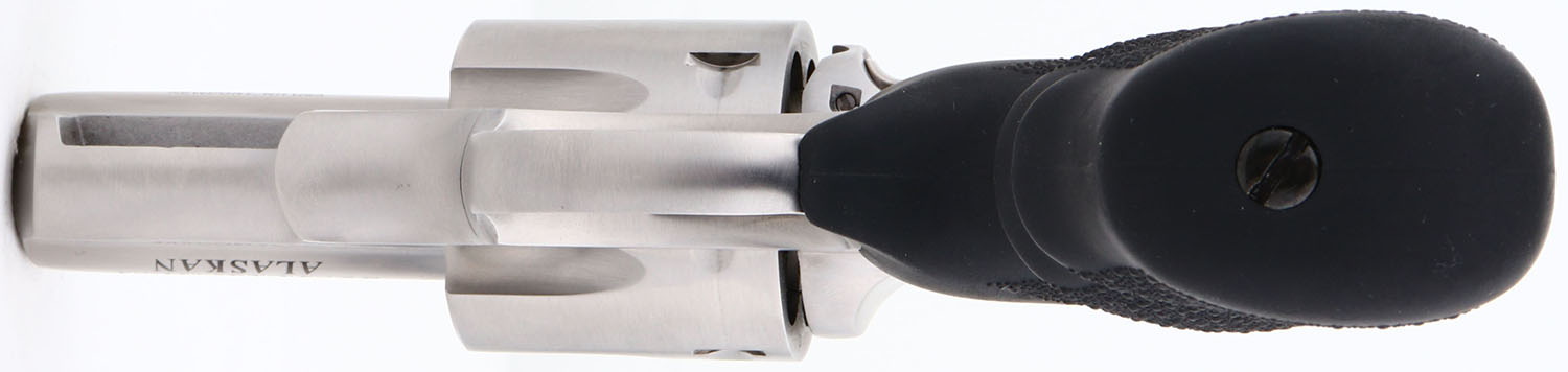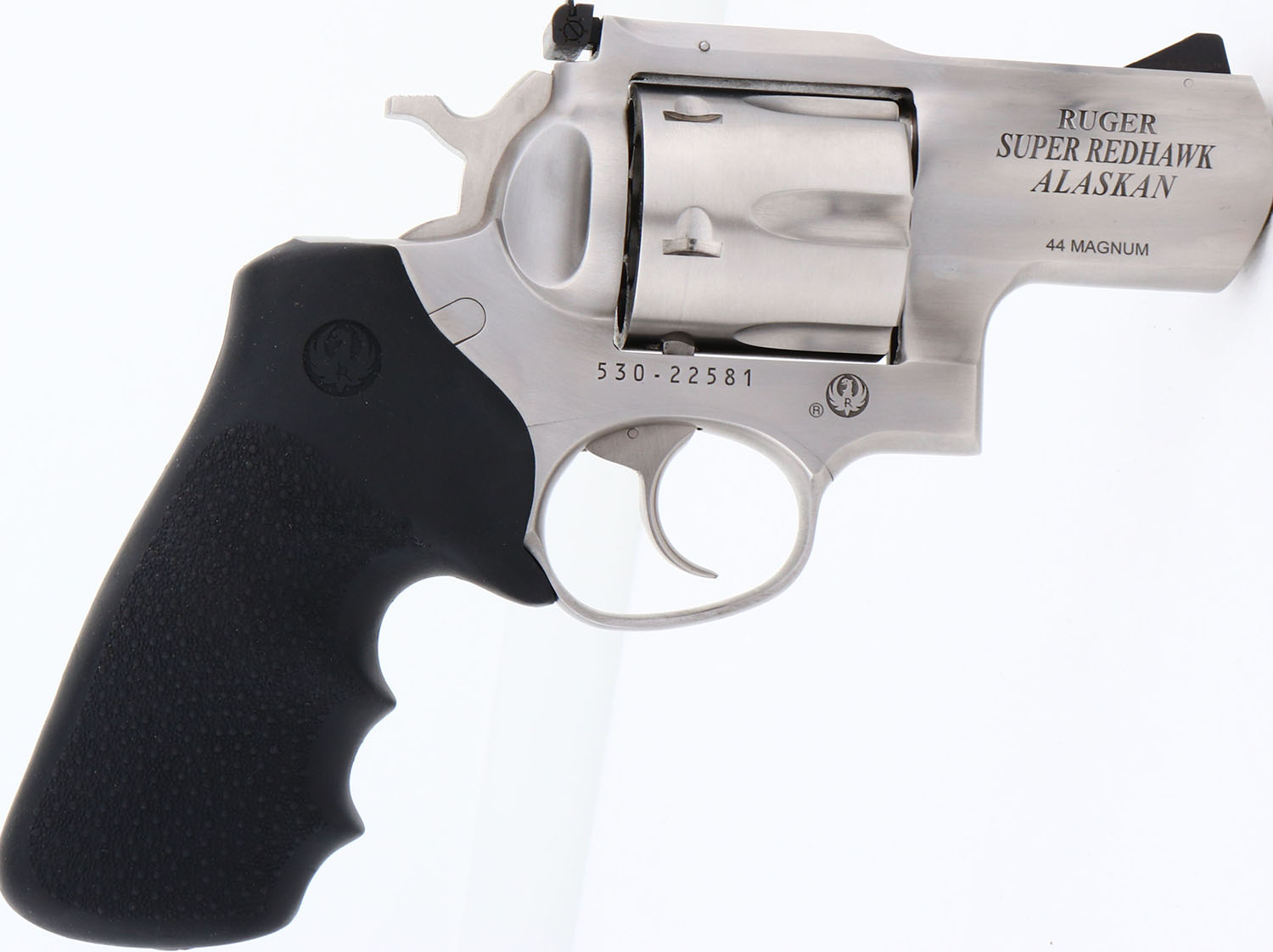 Ruger, Super Redhawk Alaskan, CAL: 44 MAG, MFG: Modern, SN: 530-22581, Double Action Revolver, 2 1/2'' barrel. The Ruger logo textured rubber grips are excellent. The polished stainless steel finish is excellent & minty. Bore is excellent. The frame holds an adjustable rear sight & blade front sight. A great option for protection in the woods. FFL Req. - Value: 1000 to 2000