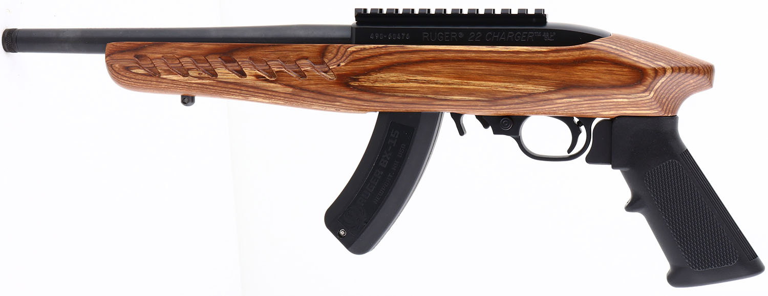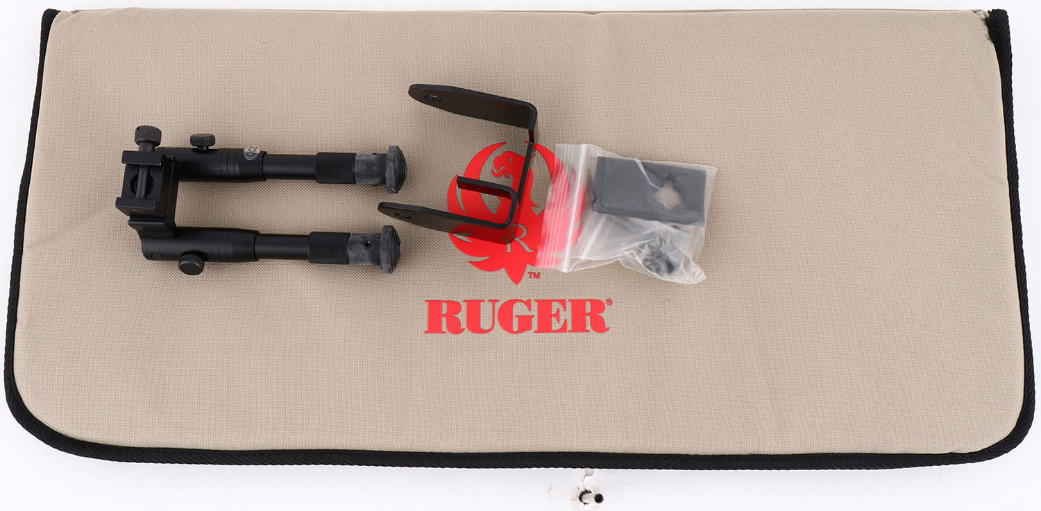NEW, BOXED, Ruger, Model ''Charger'' Talo Distributor Exclusive, CAL: 22LR, MFG: Modern, SN: 490-60476, Semi Auto Pistol, 10'' barrel. The laminated wood stock & checkered plastic grip are excellent. The metal blue finish on the barrel is excellent, rating 99%+ & the matte black finish on the receiver rates 99%. Bore is excellent, unfired after factory test. No open sight provisions. Receiver holds a factory picatinny rail for optics. Comes in factory box, with Ruger carrying case, lock, UTG bipod, owners manual & test fire cartridge. NOS. FFL Req. - Value: 400 to 600