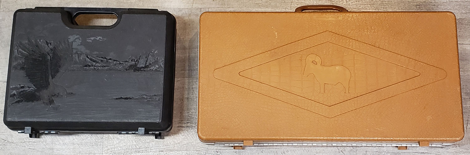Lot of two pistol cases, Brown Gun Guard, 26x13x4.6'', Black Doskocil, 16x13x6'', egg crate foam interiors, used. - Value: 20 to 75