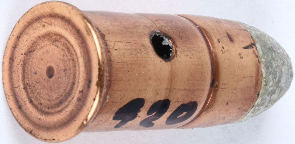 RARE N/H, 56-50 Spencer ''full circle crimp'' 1-hole dummy for display, conical LD. Grade: Very Good ++ - Value: 100 to 500