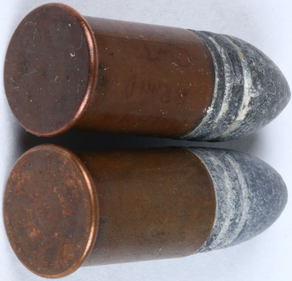 Lot of 2 R/F N/H, 56-56 Spencer early navy & infantry loads by C.D.L., conical LD. 2-GR. Grade: Very Good ++ - Value: 40 to 70