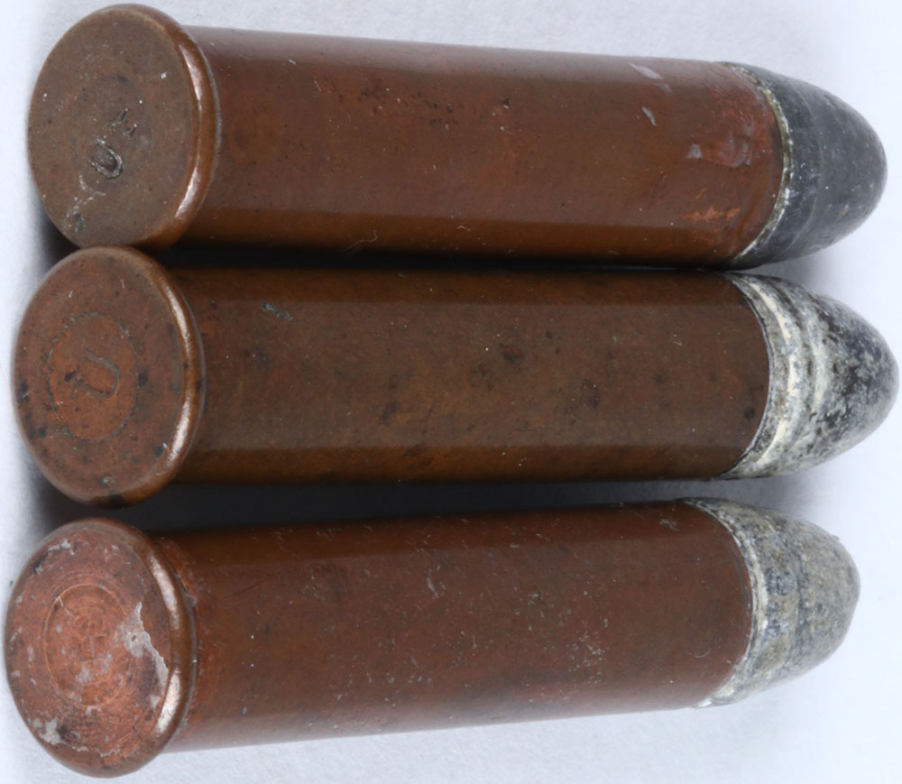 Lot of 3 R/F (1.) H/S= (raised) ''U'' 38 ex. Long conical LD. 2-KN. (2.) H/S= (raised) ''U.S.'' in circle 38 ex. Long, conical LD. Belted. Grade: Very Good ++ - Value: 20 to 80