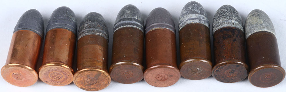 Lot of 8 R/F H/S= (raised) ''U.S.'' 44 short COP. CS., R.N.L. belted. Grade: Very Good + - Value: 20 to 80