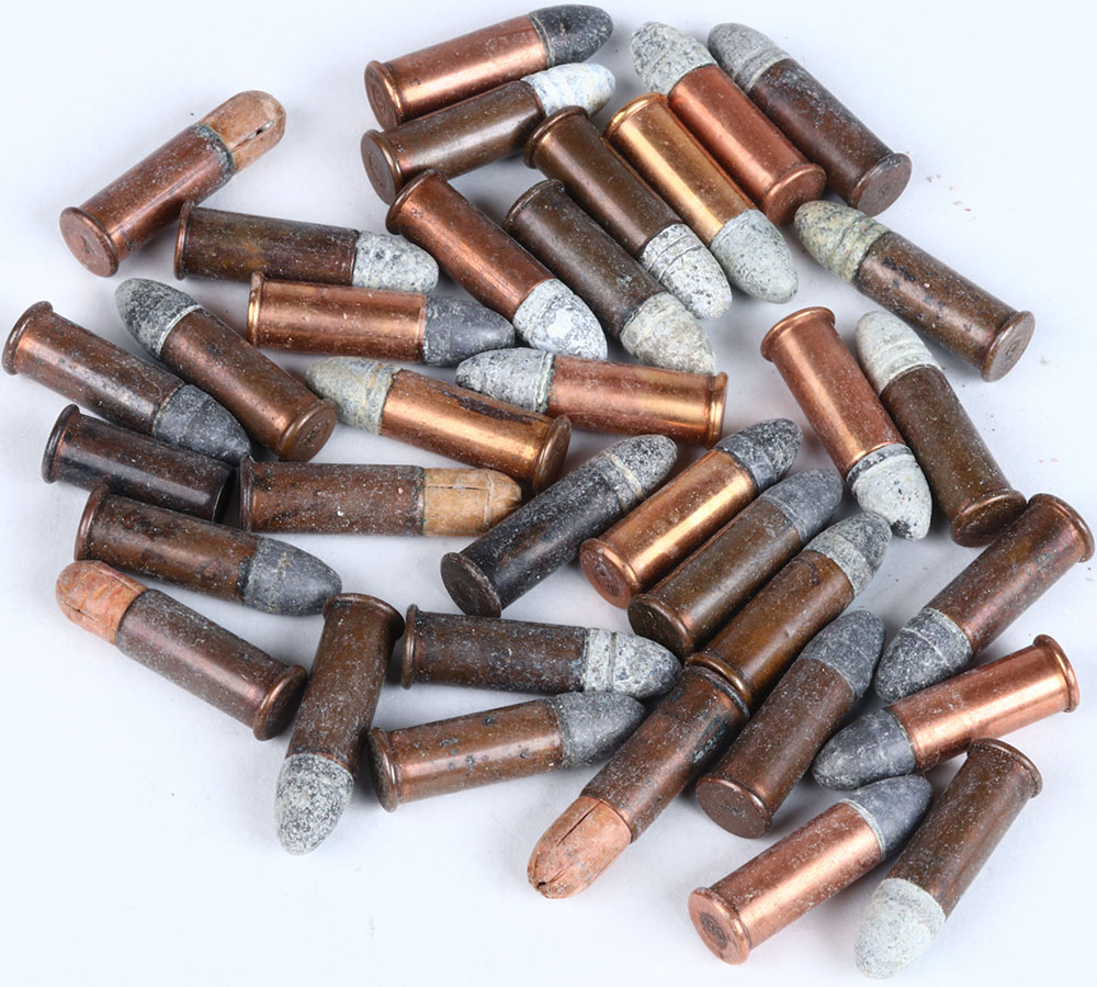 Lot of 35 raised H/S R/F (18.) H/S= (raised) ''U.S.'' 32 long R/F COP. CS., R.N.L. belted (7.) H/S= (raised) ''P'' 32 long R/F COP. CS., R.N.L. 1-GR. (4.) H/S= (raised) ''A'' 32 long R/F shot load, tan paper sabot (1.) H/S= (raised) ''A'' 32 long R/F blank, buff wad (1.) H/S= (raised) ''A'', 32 long R/F R.N.L. 1-KN. (4.) H/S= (raised) ''U''., 32 long R/F R.N.L. 2-KN. Grade: Excellent - Value: 20 to 40