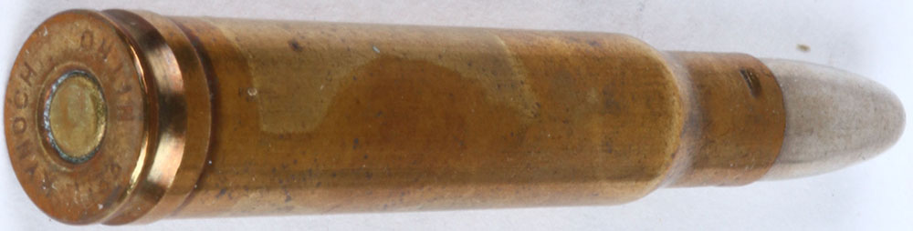 H/S= ''KYNOCH 33 NITRO'' 33 BSA belted rimless N.E. FLT. BR. PRI., 3-crimps, F.P. TIN R.N.-X (takes magnet). Grade: Excellent + - Value: 40 to 70
