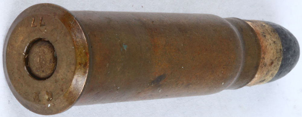 H/S= ''GF 77'' 11 x 51 R Belg. Comblain, oval brass primer, PP. RNL. Grade: Very Good + - Value: 20 to 50
