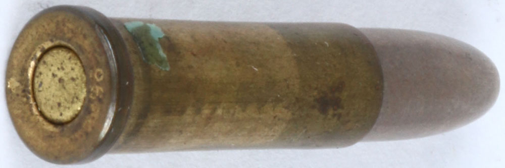 H/S= ''96'' 6.5 x 23 R Mannlicher model 1894, flat brass primer, FP. TIN. RN. -x Grade: Excellent - Value: 10 to 30