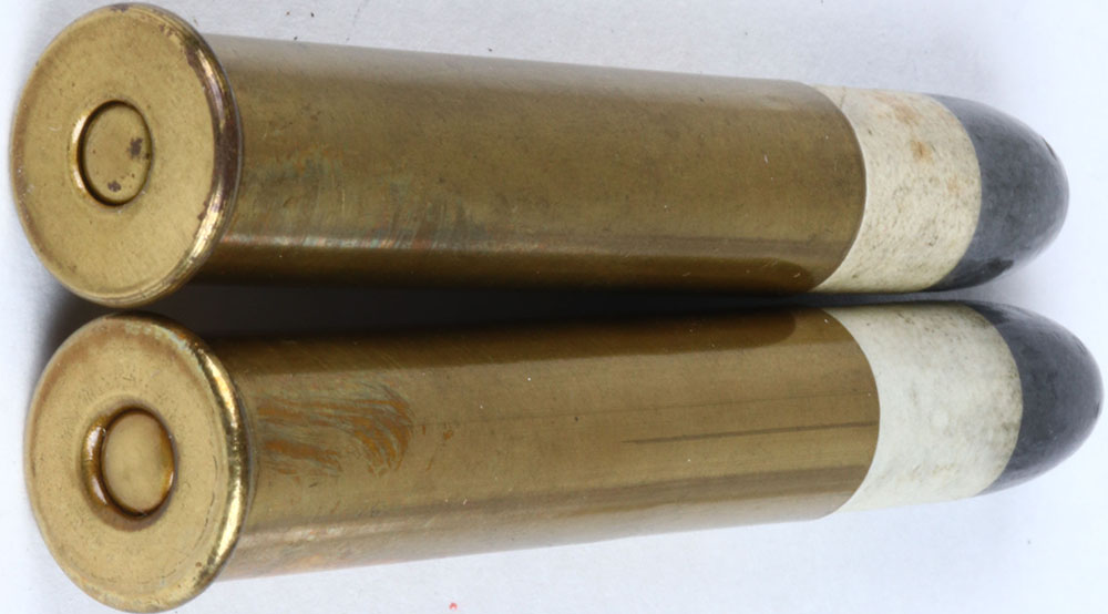 N/H, 45-70 sharps 2.1'' C.L. (WIN. MFG.) oval BR. .210 boxer PRI., P.P. F.N.L. N/H, 45-70 sharps 2.1'' C.L. (early U.M.C. MFG.) BR. Berdan PRI. P.P. F.N.L. Grade: Excellent + - Value: 40 to 100