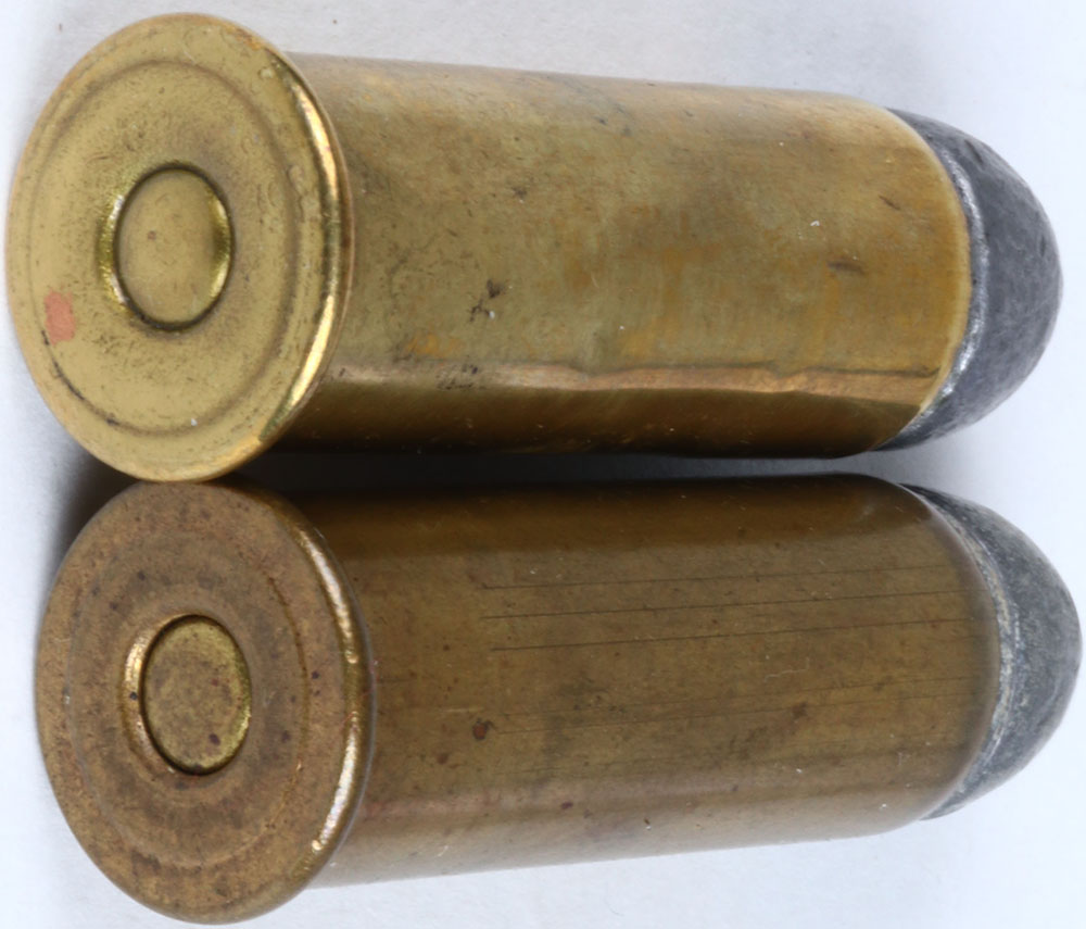 Lot of 2 Variations (1) N/H 58 Musket, iron anvil oval brass berdan primer FNL. 1-GR (1) N/H 58 musket, salesman's dummy, 1-small case hole internal wood rod, oval brass berdan primer, FNL. 1-GR. Grade: Excellent - Value: 60 to 100