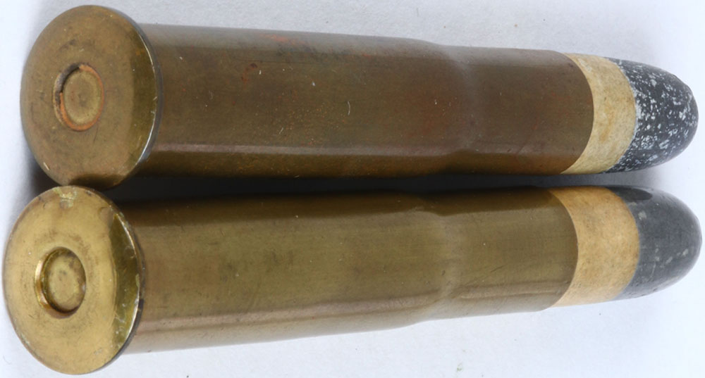 Lot of 2 bullet variations N/H, 44-90 sharps & rem. 2 7/16'' B.N. early REM. MFG., dished HD., oval BR. PRI., 1- P.P. F.N.L. & 1- P.P. R.N.L. Grade: Excellent - Value: 80 to 100