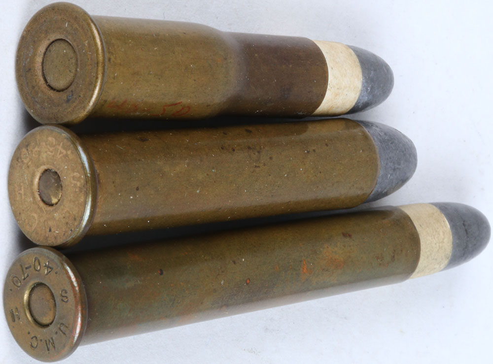 Lot of 3 H/S= ''S.U.M.C.H 45-85'' 2.1'' C.L. SM. Oval BR. PRI., F.N.L. H/S= None, early MFG. 40-50 sharps & REM. Reg., oval BR. Berdan PRI., P.P.L. F.N. H/S= ''S U.M.C.H 40-70'', 2 1/2'' C.L. sharps & rem., oval BR. Boxer type PRI., P.P.L. F.N. Grade: Very Good + - Value: 20 to 40