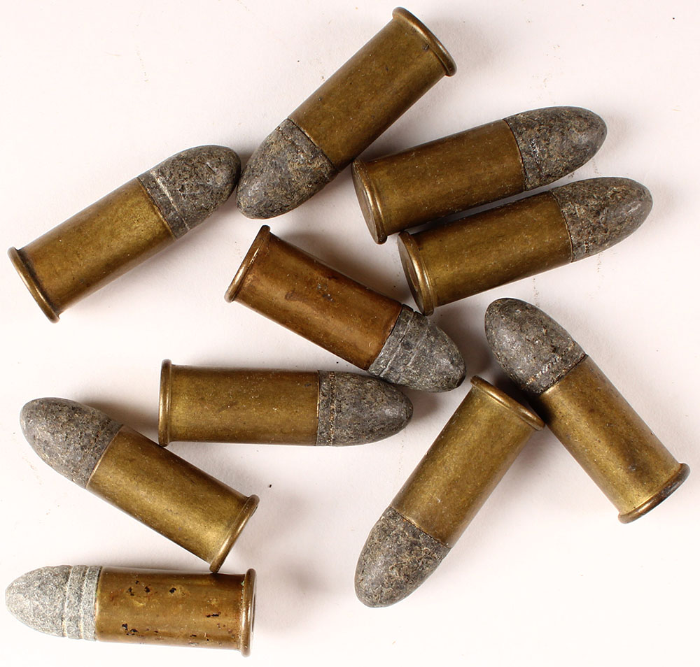 Lot of 10 N/H, 44 S.&W. American very early MFG., SM. FLT. COP. PRI., conical LD. 2-KN. Grade: Very Good + - Value: 10 to 30