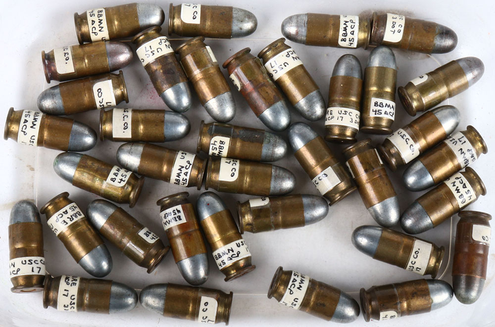 Lot of 36---45 Auto by USC. World War I Military contract 1917. HS=''U.S.C.CO. 17''. CN RN. Case cannelure. Condition Very Good - Value: 20 to 70