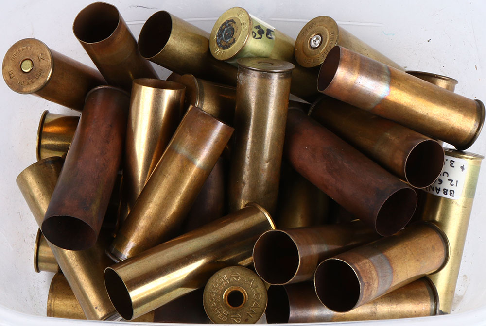 | Large lot of Brass shotshells, all empty, have age soiling. Grad...