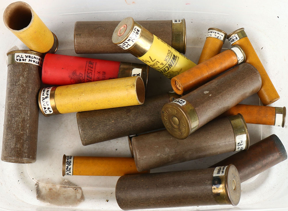Lot of 17 loaded and empty paper and plastic shotshells, mixed gauges. Grade: Excellent - Value: 10 to 100