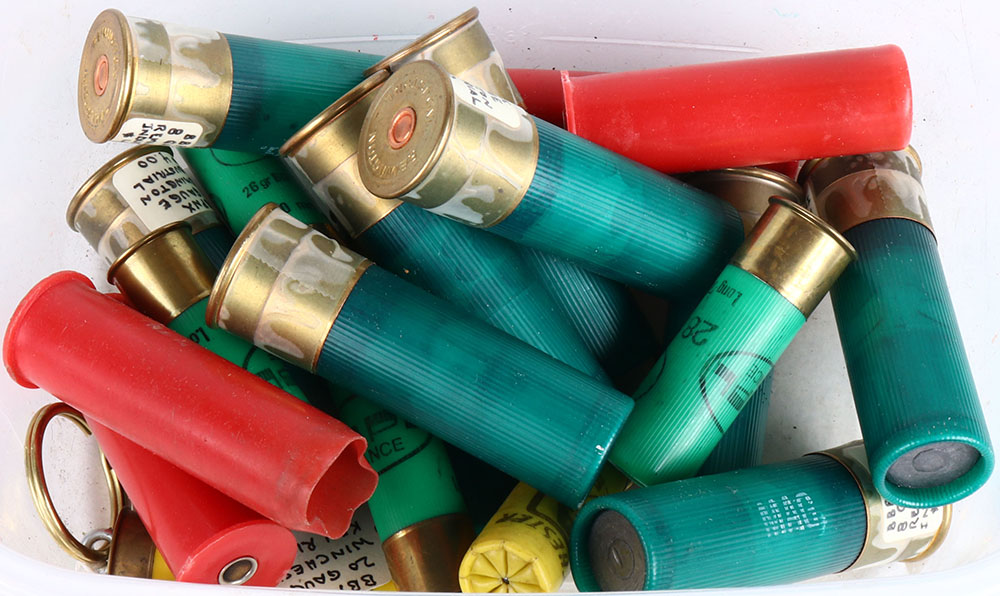 | Large lot of 20 loaded and empty plastic and paper shotshells. ...