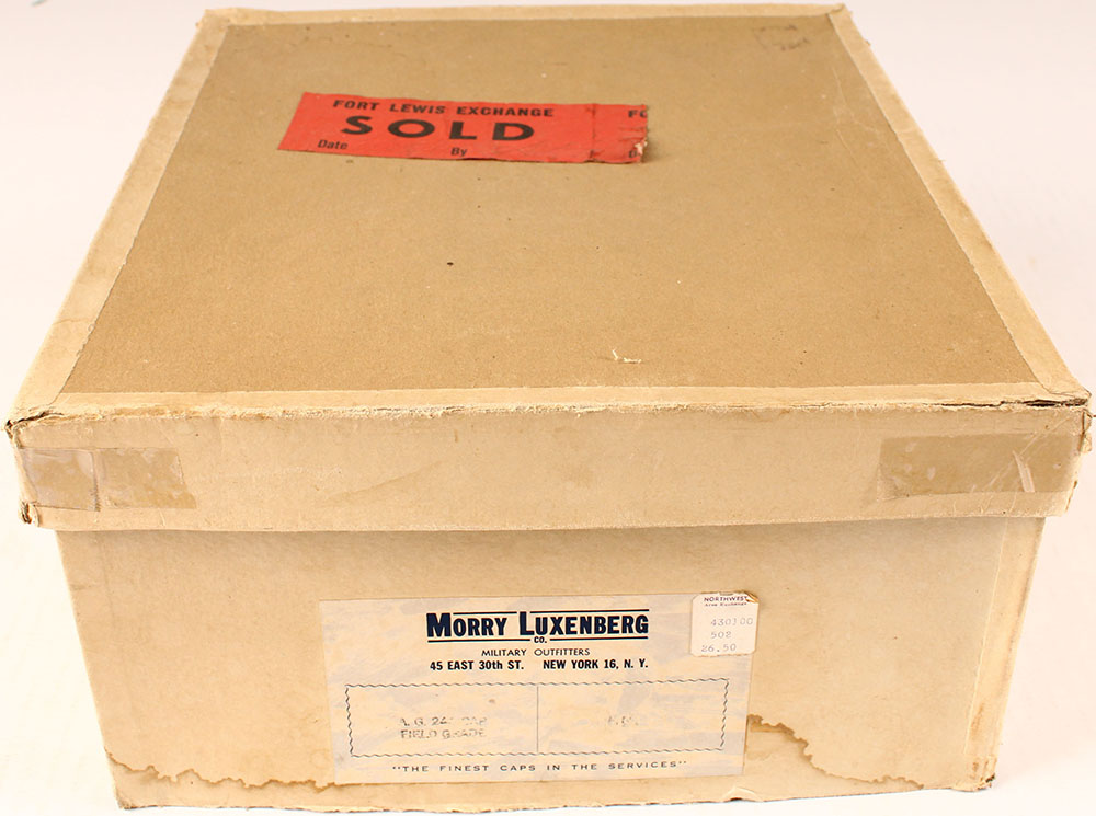 US, 1960's Army officers hat, size 6 7/8, shows no wear, Morry Luxenberg made & has box from manufacture. Grade: Excellent ++ - Value: 2 to 60
