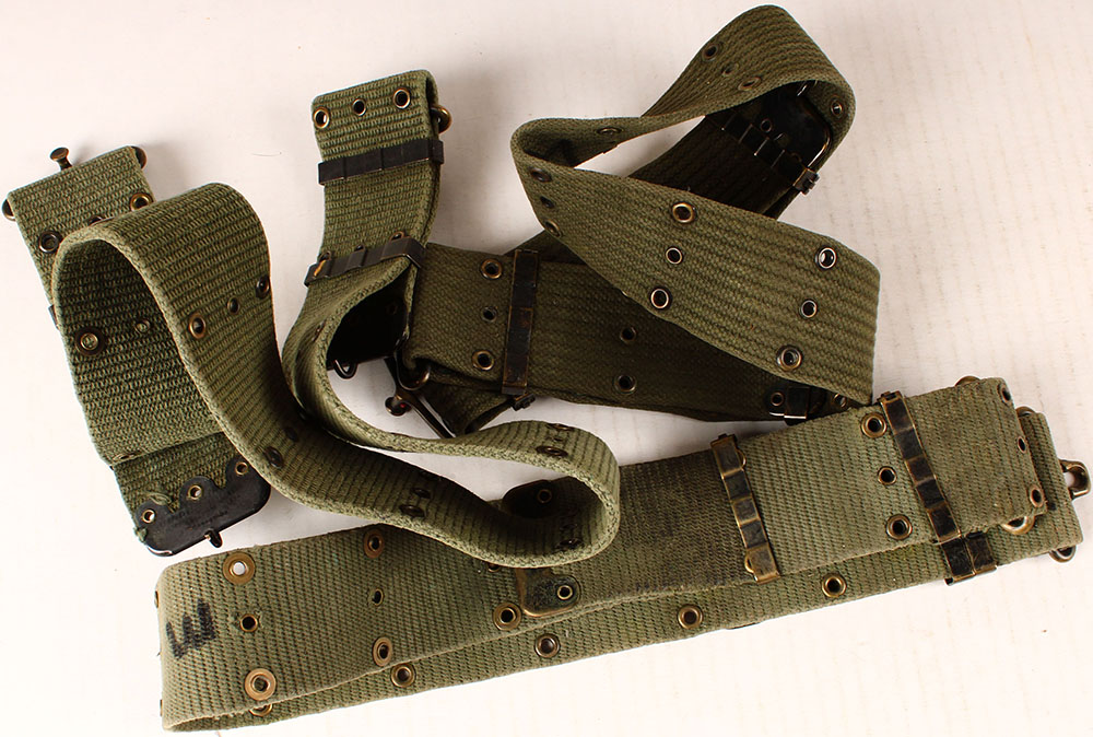 Lot of three military belts. Grade: Very Good ++ - Value: 4 to 30