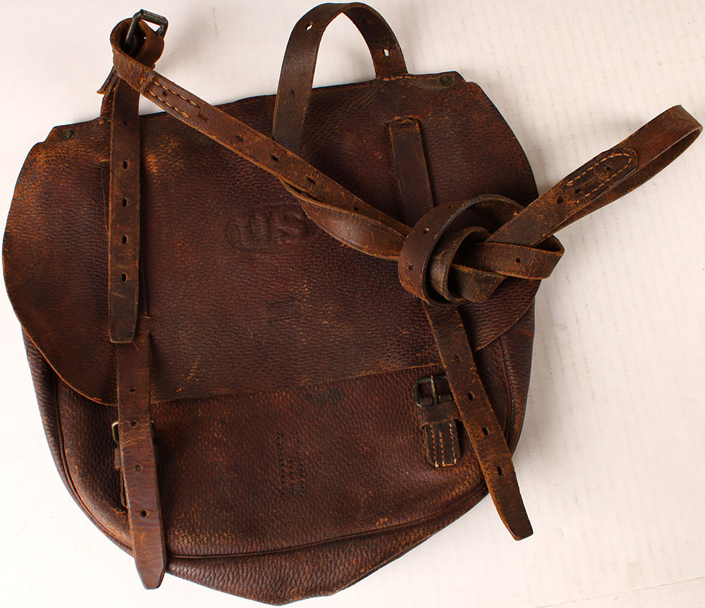 US, Leather pouch, marked, ''US'', leather has hardened from age & shows wear. Grade: Very Good ++ - Value: 20 to 60