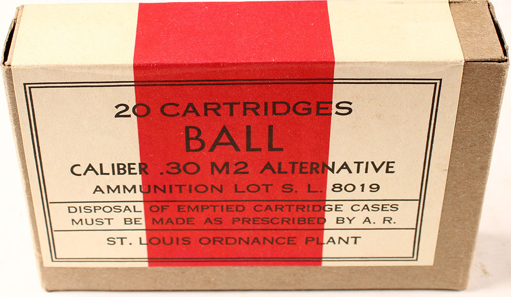 ST. Louis, .30 M2 Alternative Ball, Lot S. L. 8019, 1pc, FULL & SEALED, buff box with buff/red label & black print, box is solid with little to no wear. Grade: MINT - Value: 20 to 40
