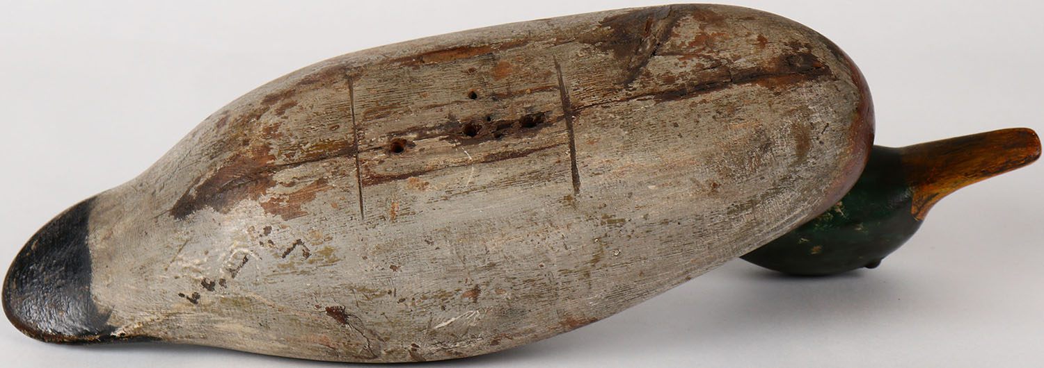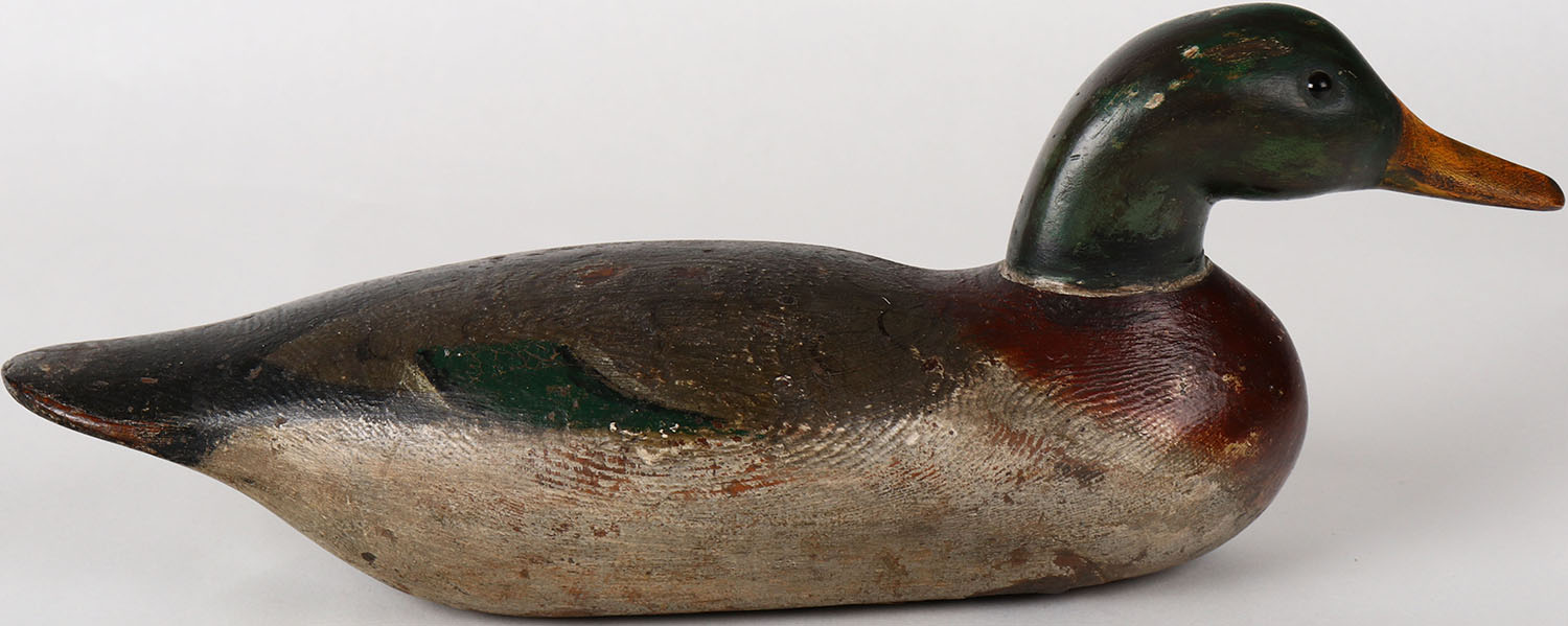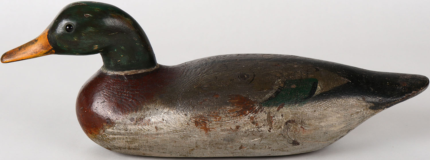 Mallard Drake by Mason Decoy Company, Detroit, MI, 1896-1924 standard grade, glass eyes, solid wood, has been re-headed, repainted. Grade: Very Good ++ - Value: 50 to 200