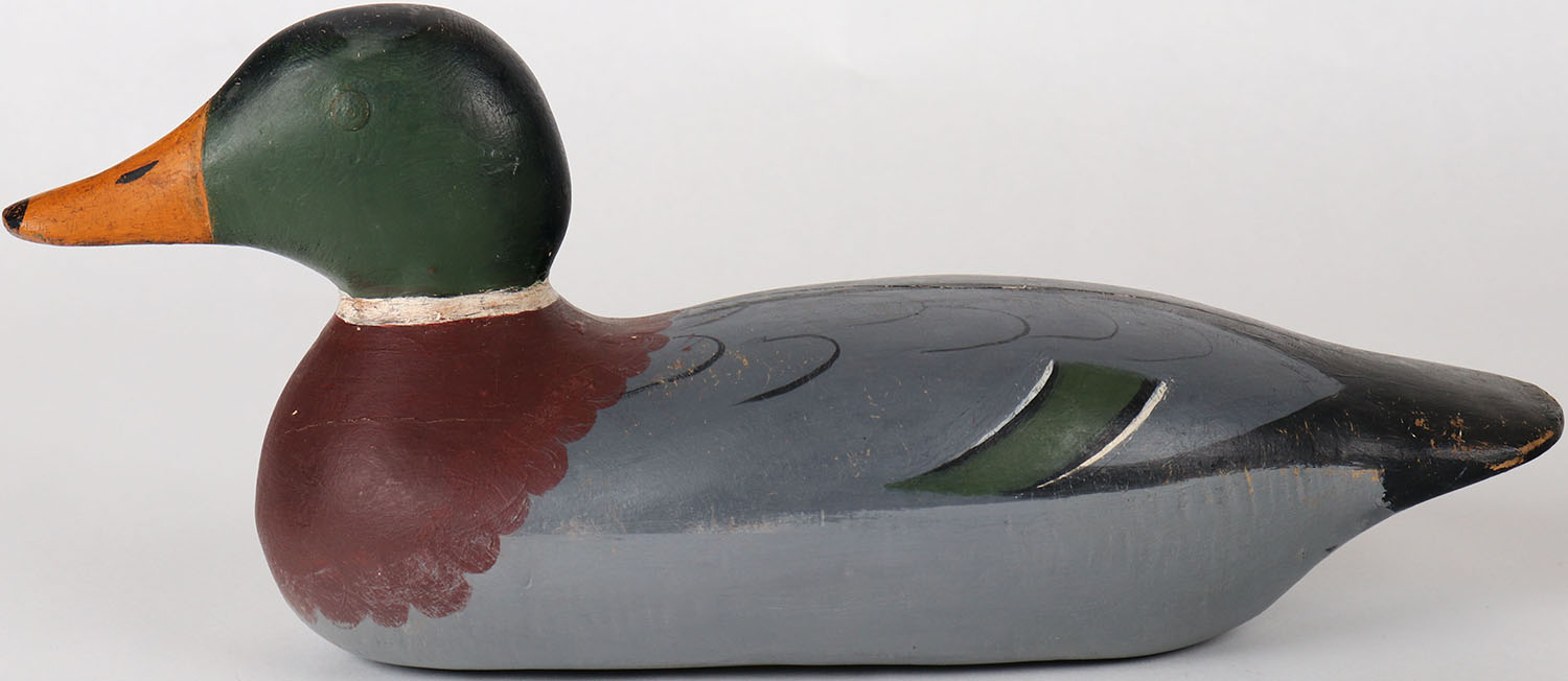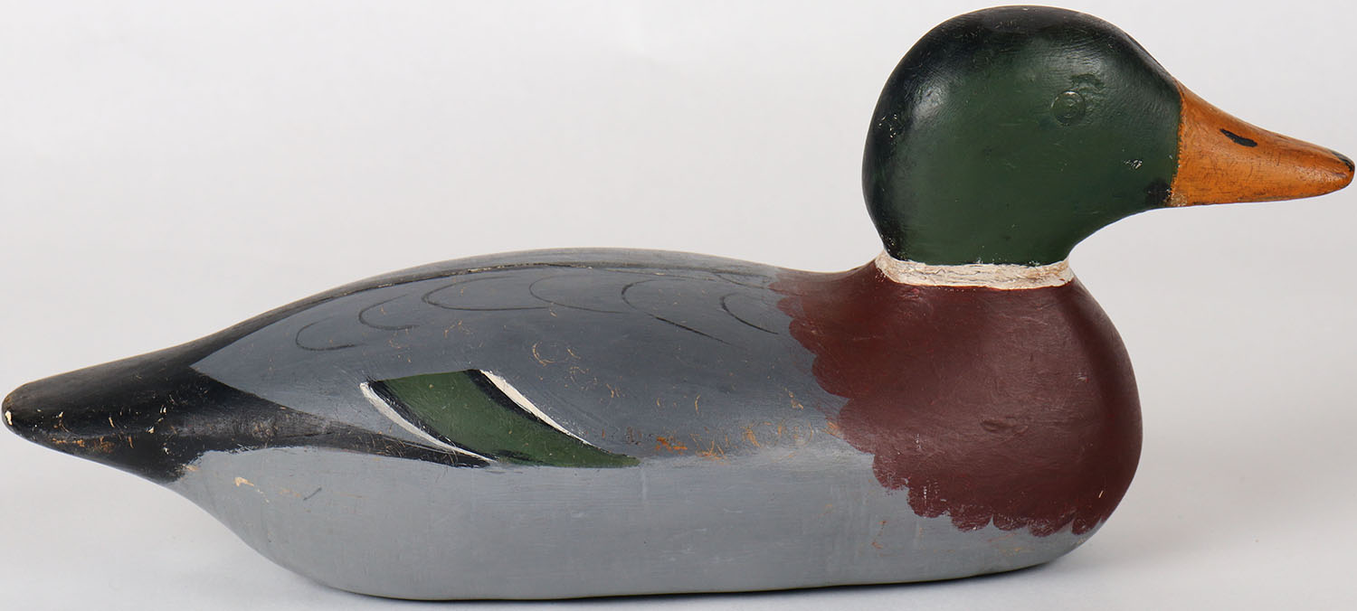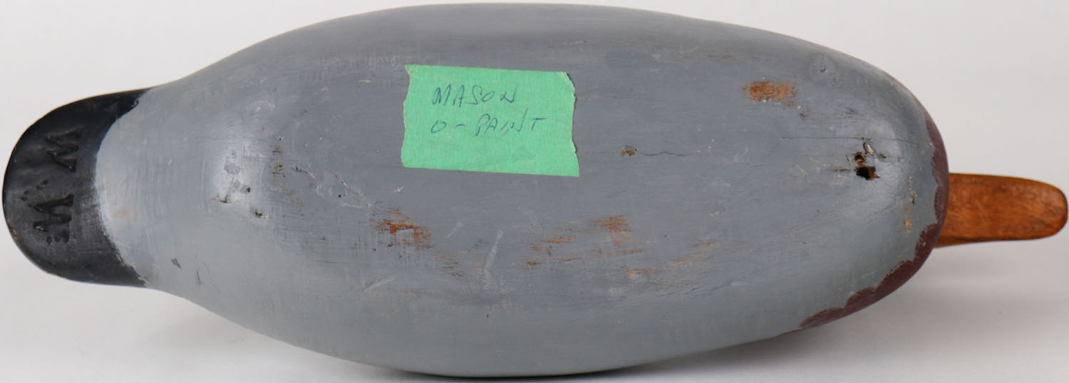 Mallard Drake by Mason Decoy Company, Detroit, MI, 1896-1924 standard grade, tack eyes, solid wood, structurally excellent, repainted. Grade: Excellent - Value: 50 to 150