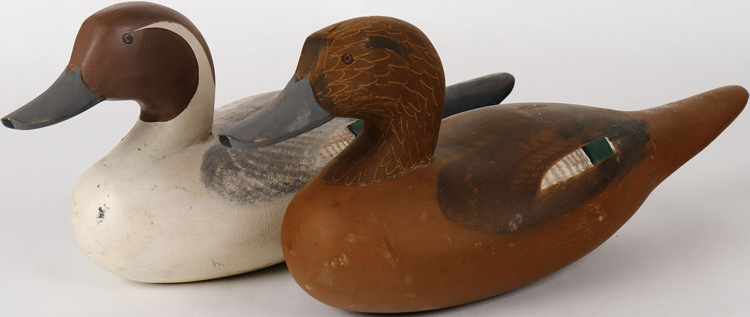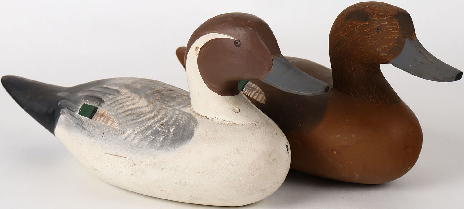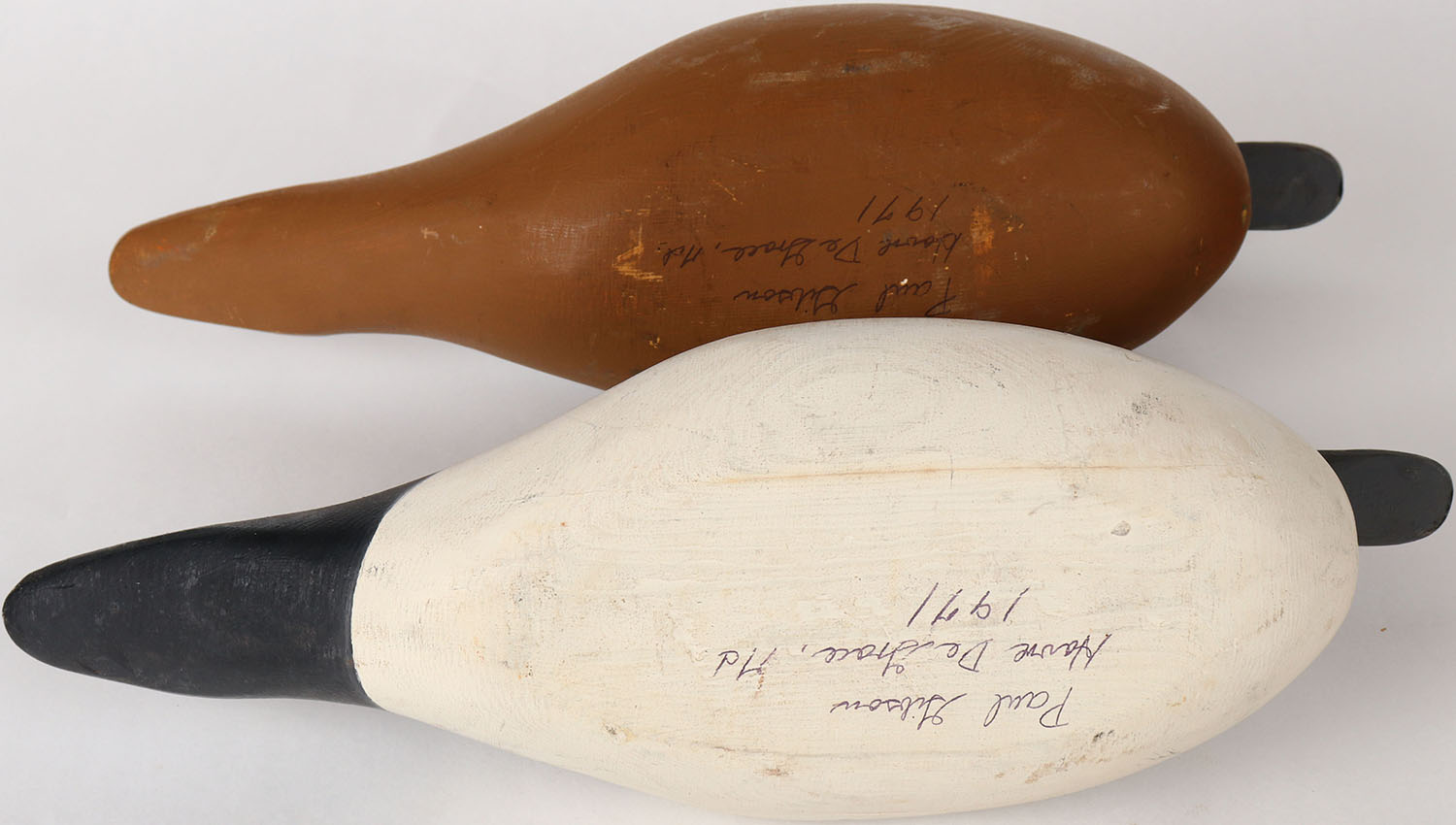 Pair of Pintails by Paul Gibson, Havre de Grace, MD, painted eyes, solid wood, structurally excellent, signed on bottom, original paint. Grade: Excellent ++ - Value: 150 to 300