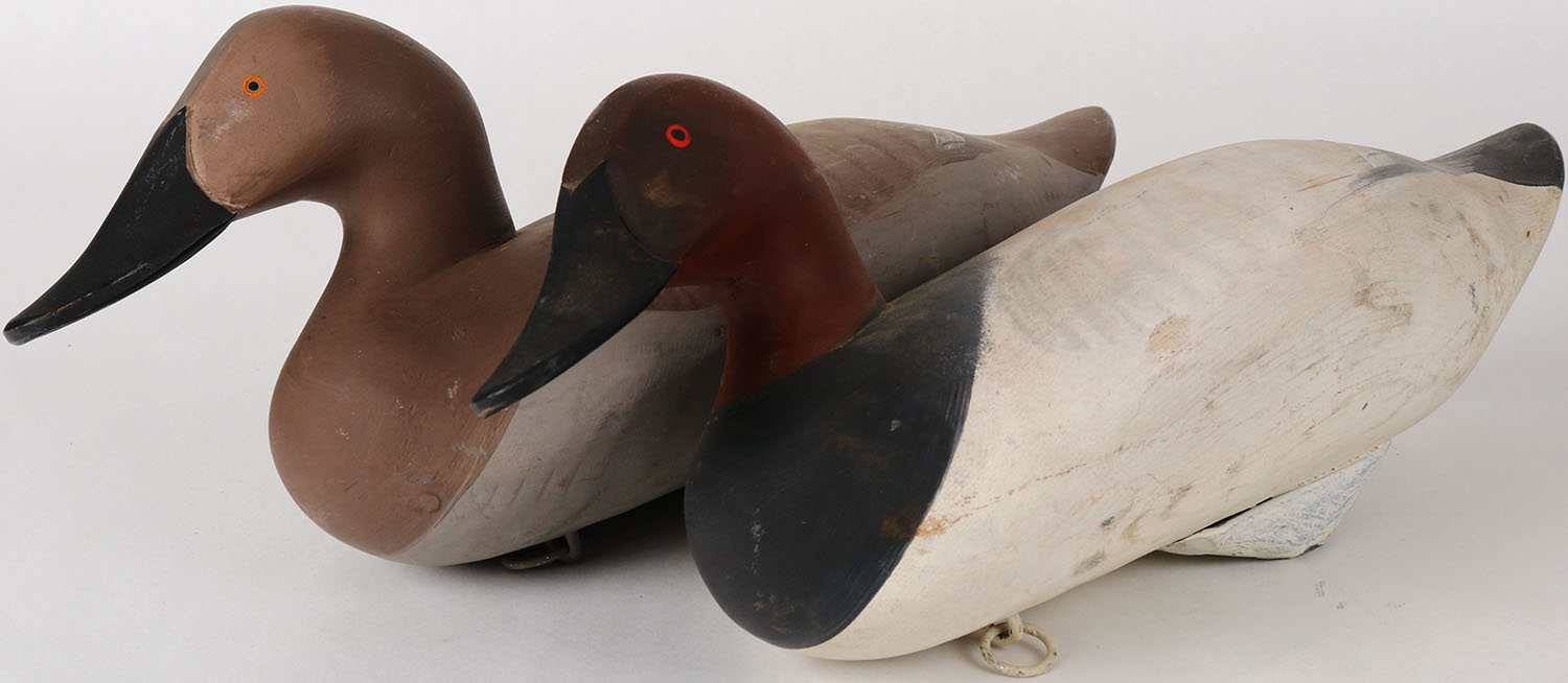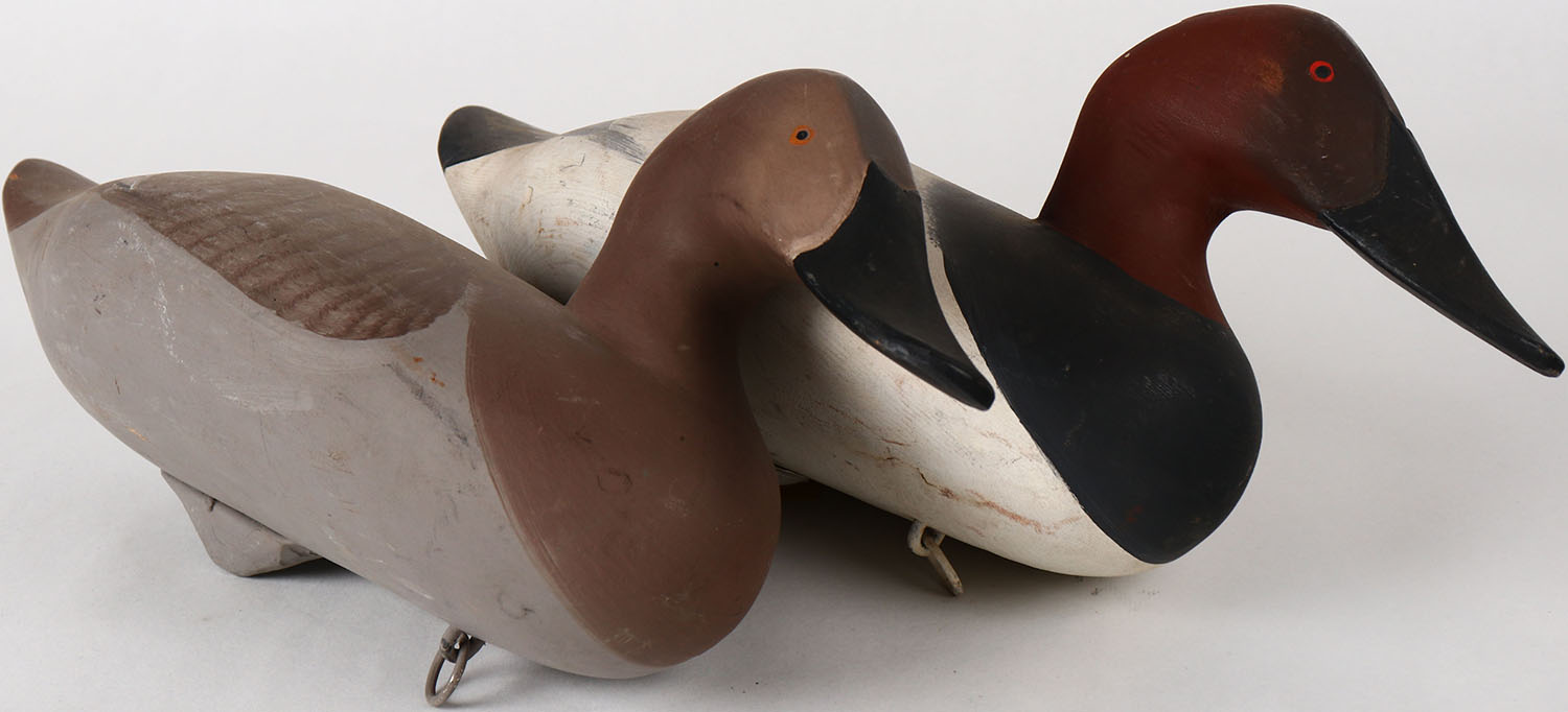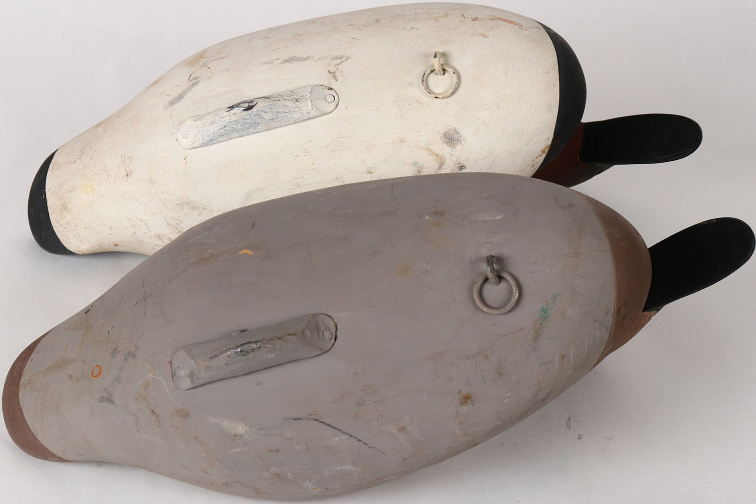 Pair of Canvasbacks by unknown maker, Havre de Grace, MD, painted eyes, solid wood, structurally excellent, original paint. Grade: Excellent ++ - Value: 100 to 200