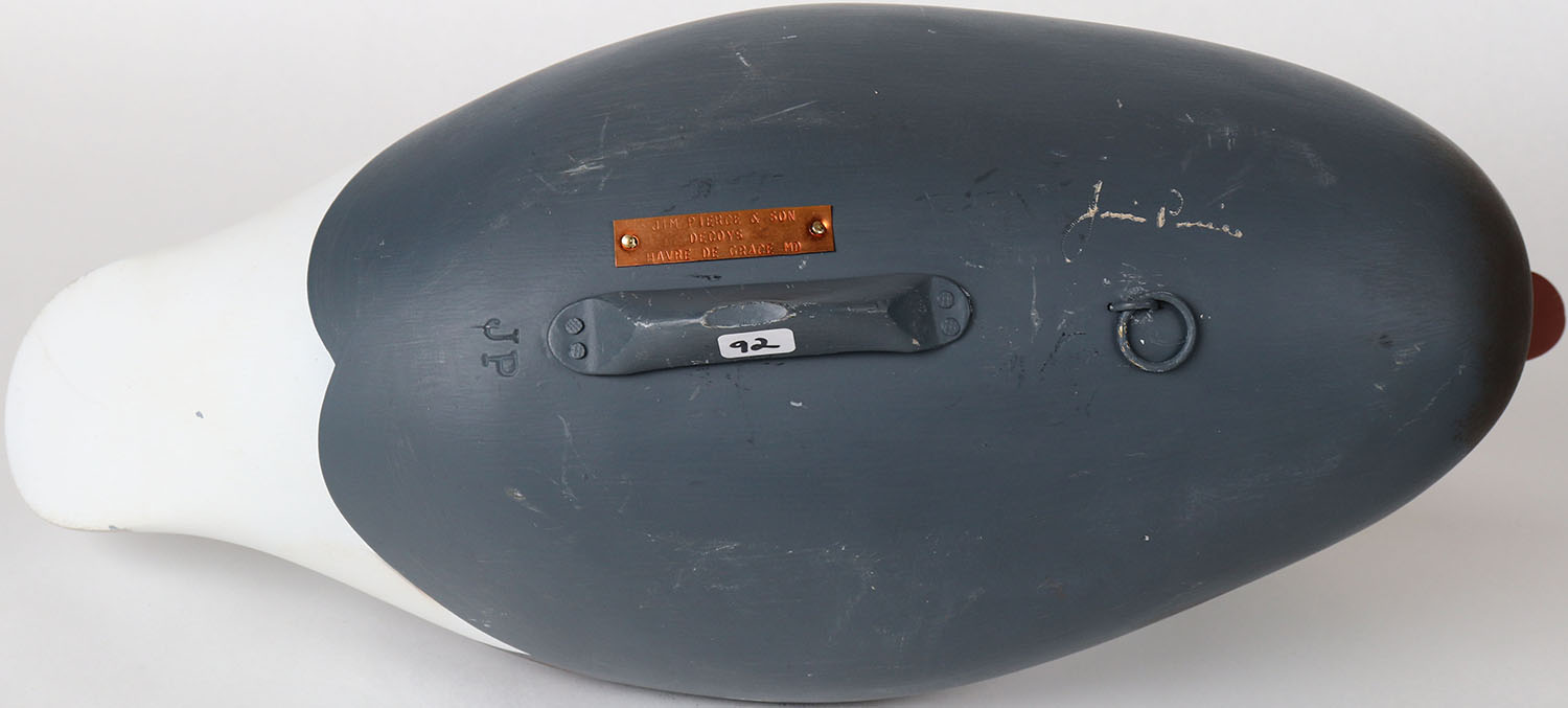 Blue Goose by Jim Pierce & Son Decoys Havre de Grace MD, painted eyes, solid wood, structurally excellent, branded JP on bottom and signed, original paint. Grade: MINT - Value: 100 to 200