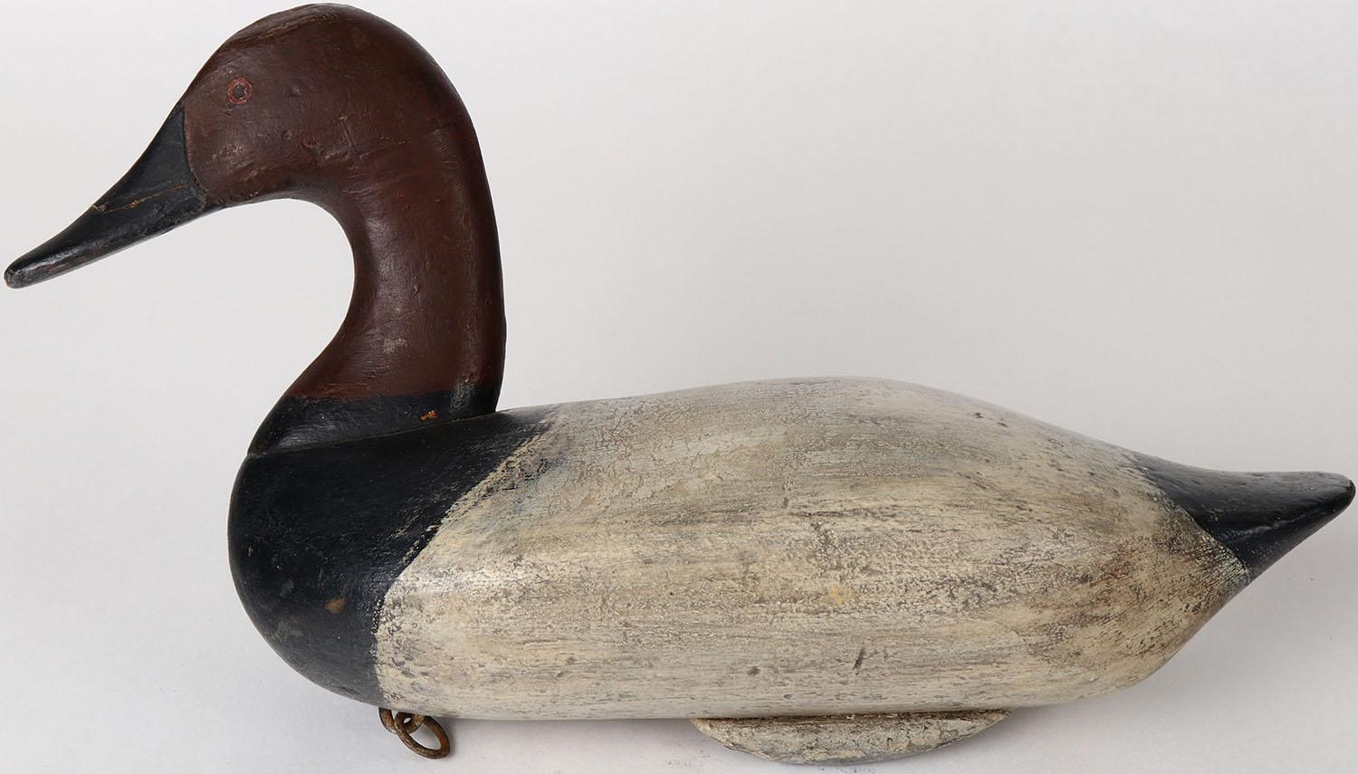 Canvasback Drake by unknown maker, MD, painted eyes, solid wood, structurally excellent, original paint. Grade: Excellent + - Value: 40 to 300