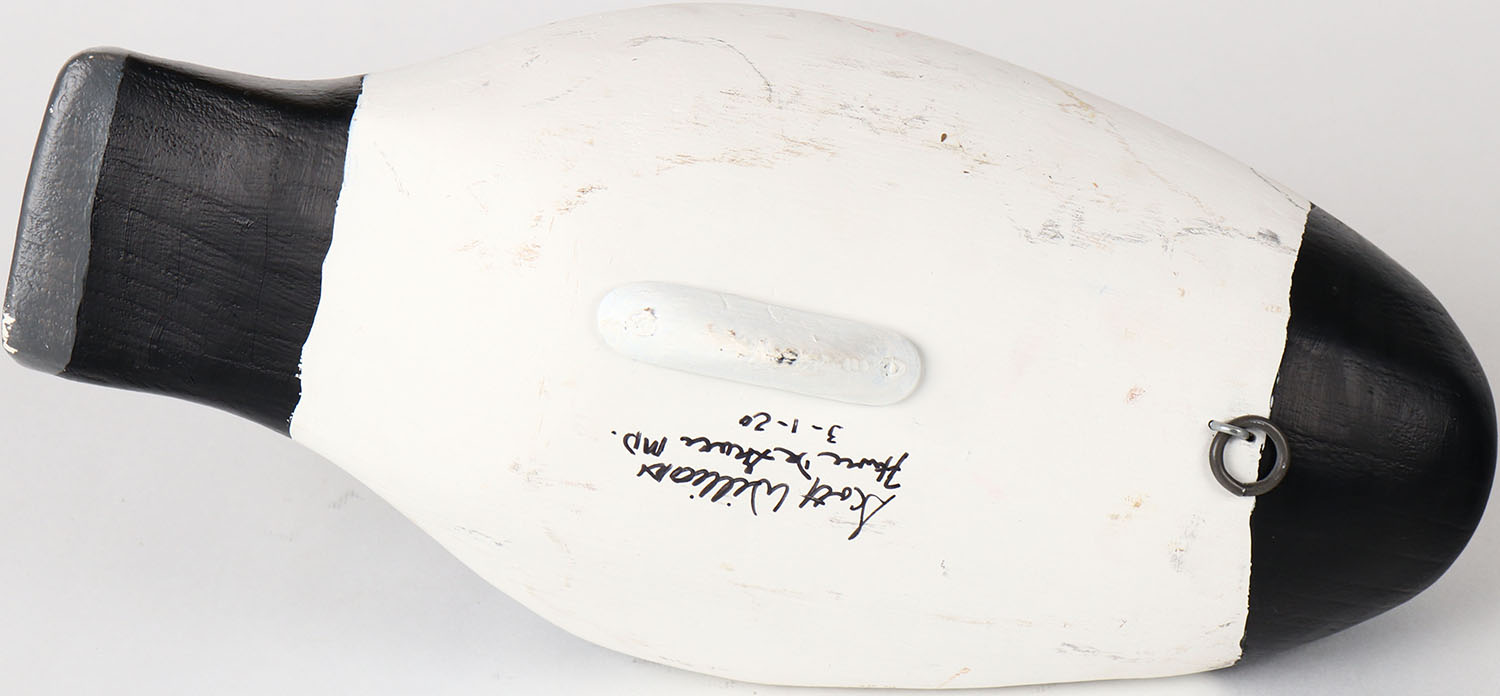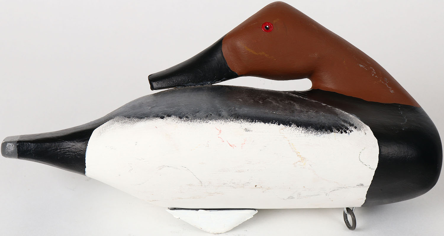 Preening Canvasback Drake by Scott William Havre De Grace MD. painted eyes, solid wood, structurally excellent, signed on bottom, repainted. Grade: MINT - Value: 50 to 100