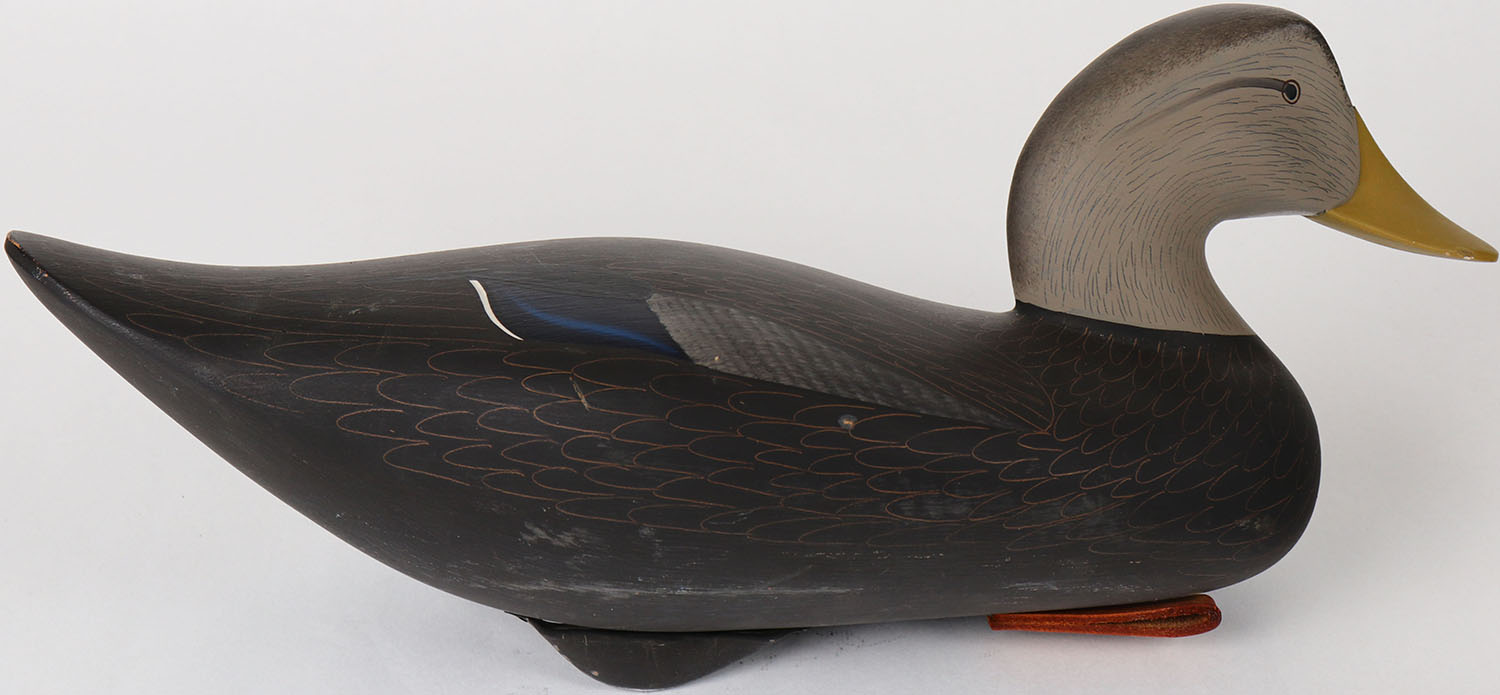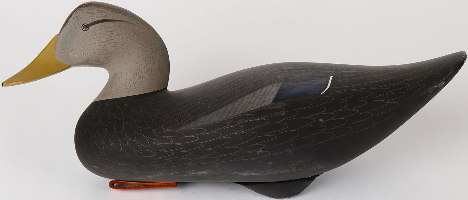 Black Duck by Dan Carson HDG, Havre de Grace, MD painted eyes, solid wood, structurally excellent, signed on bottom, original paint. Grade: MINT - Value: 50 to 150
